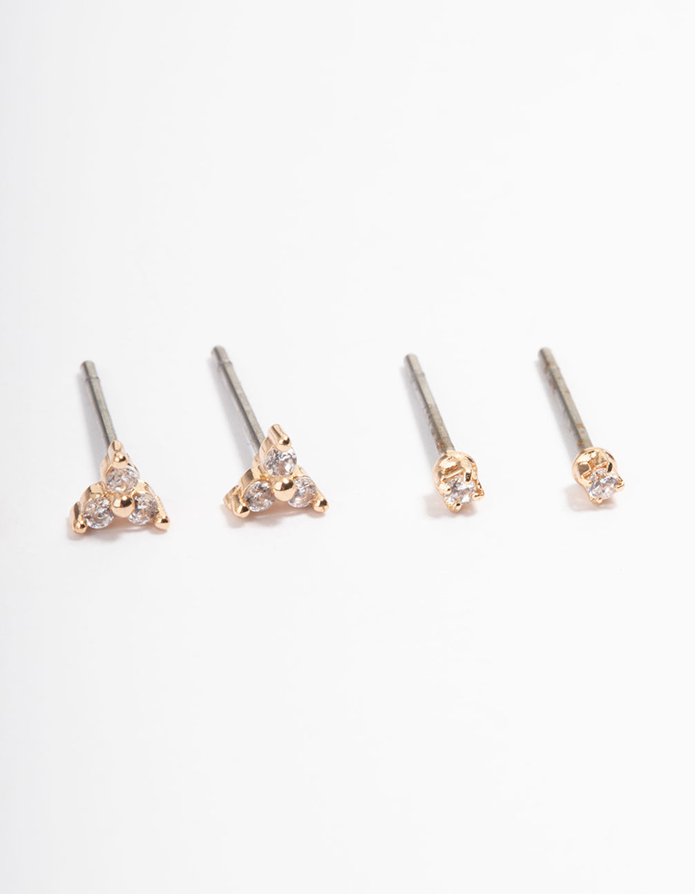 Gold Mini Cubic Zirconia Stud Earrings Pack