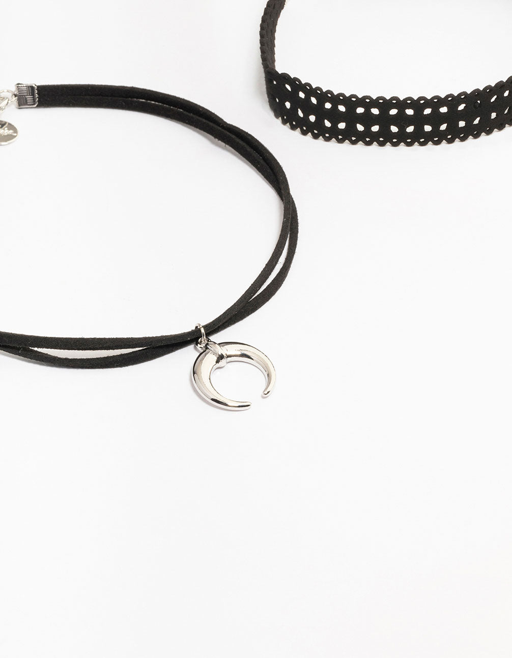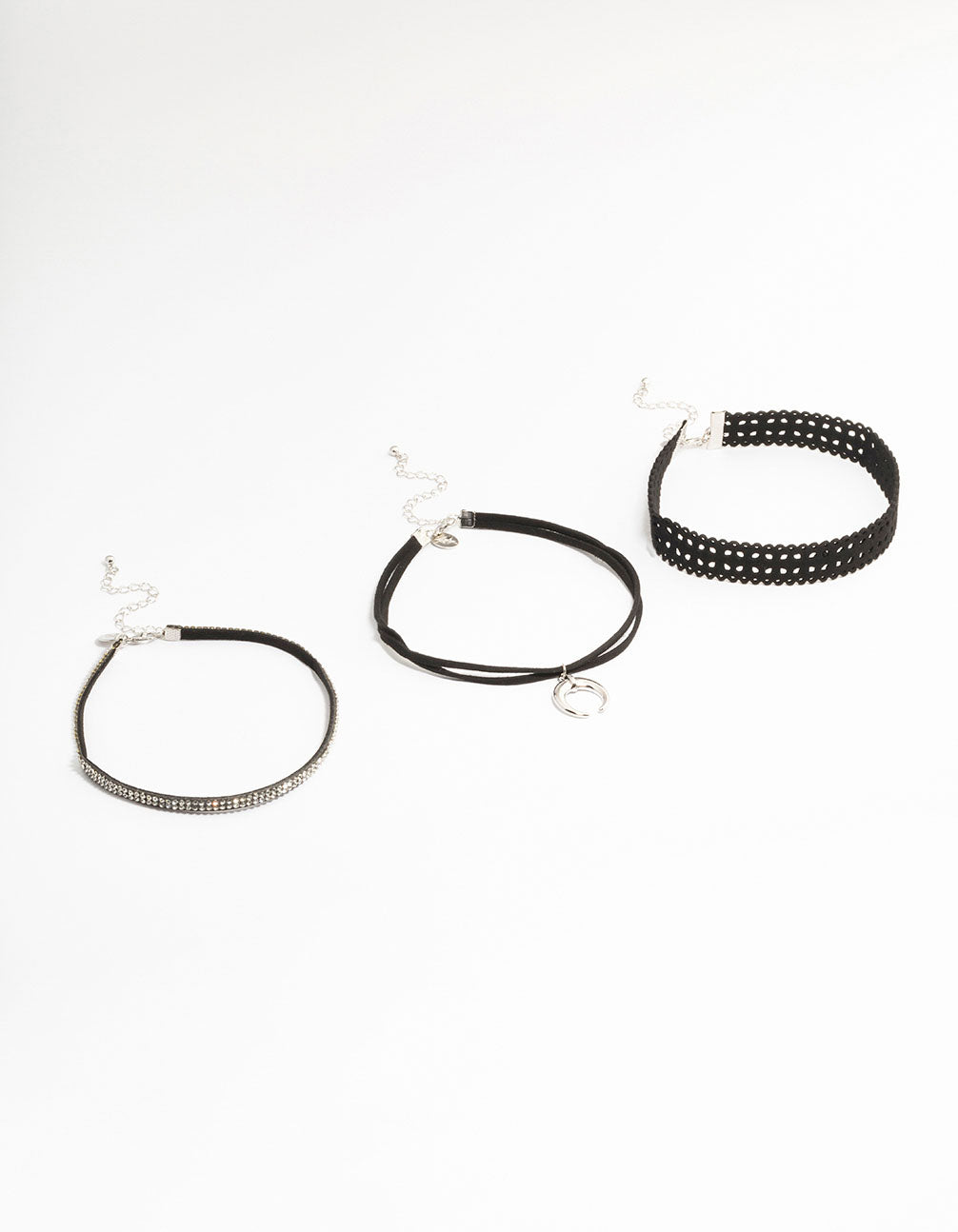 Mix it up with this funky choker pack! It includes a set of fun choker styles that are a perfect starting point for a layered look. Create a playful festival look by adding fine chains or pops of colour, or go for a 90s-inspired considered look and wear one as a standalone piece.
