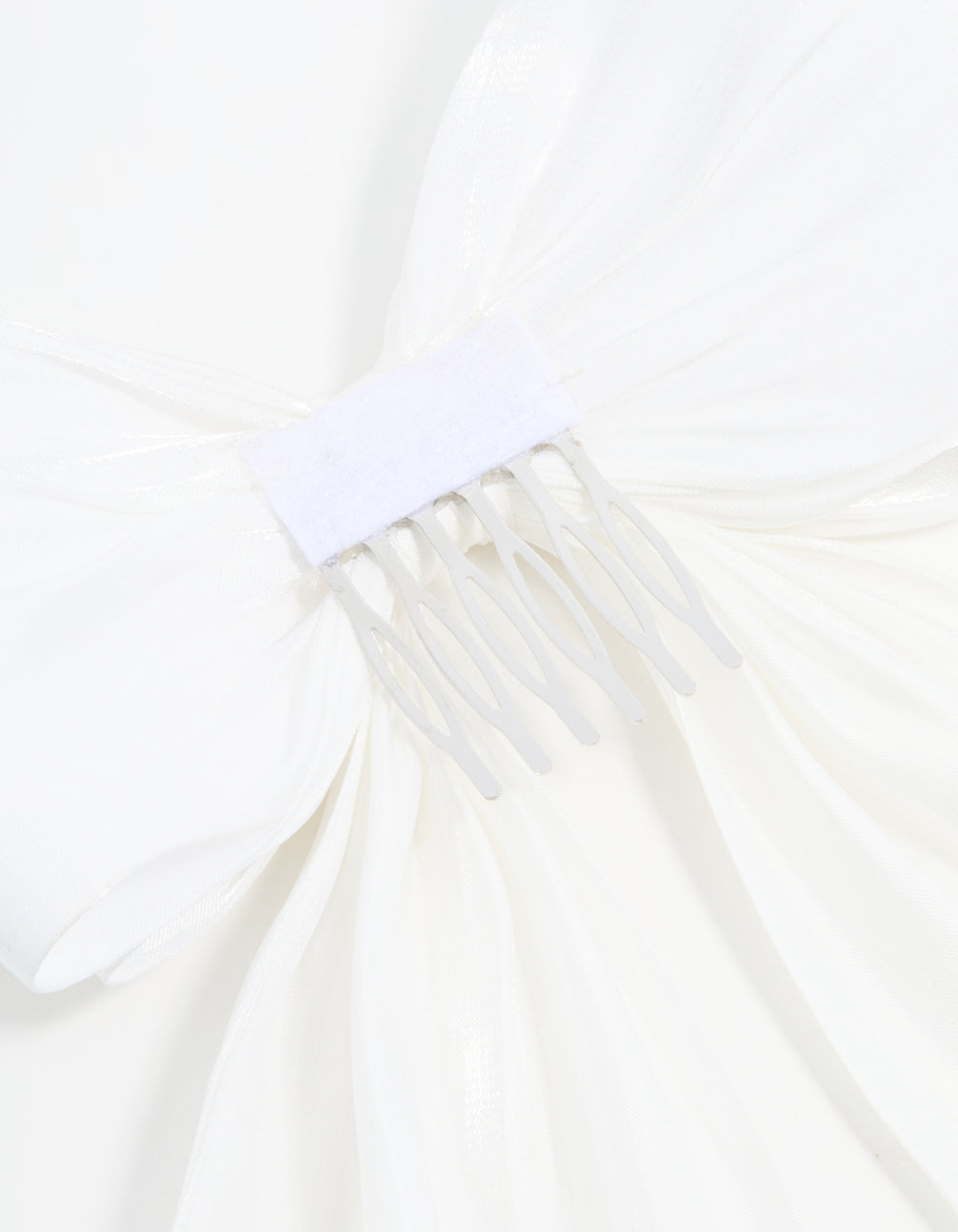Add timeless elegance to your bridal look with the Cream Bow Layered Clip! This gorgeous hair accessory features a soft, layered bow design,