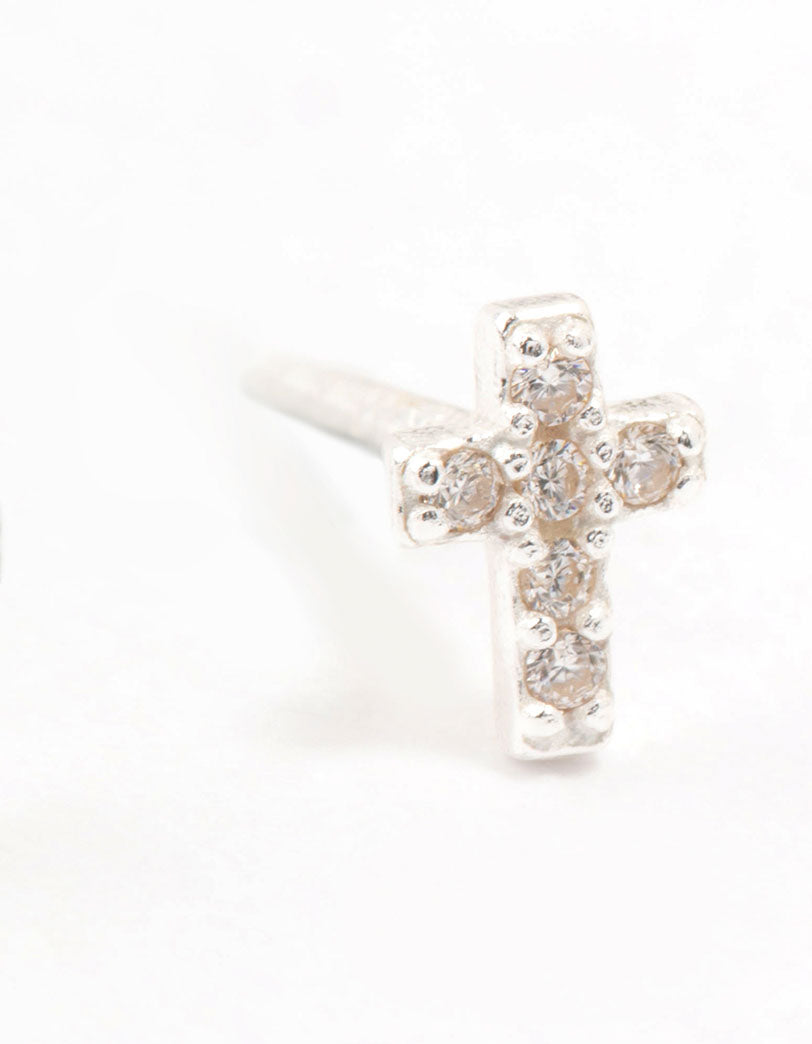 Cubic Zirconia Cross Sterling Silver Stud Earrings