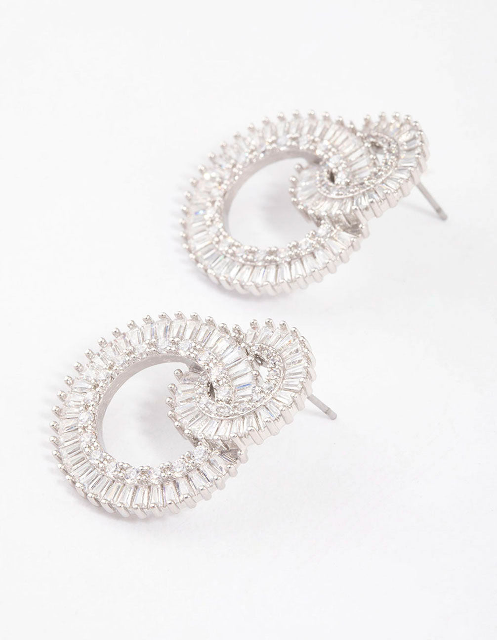 Silver Cubic Zirconia Double Circle Diamante Drop Earrings