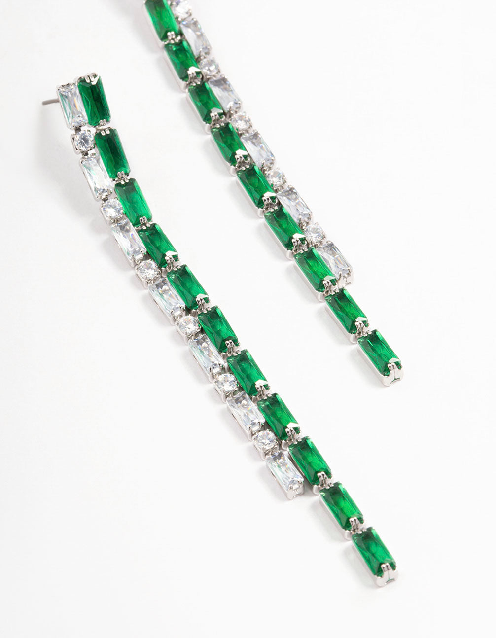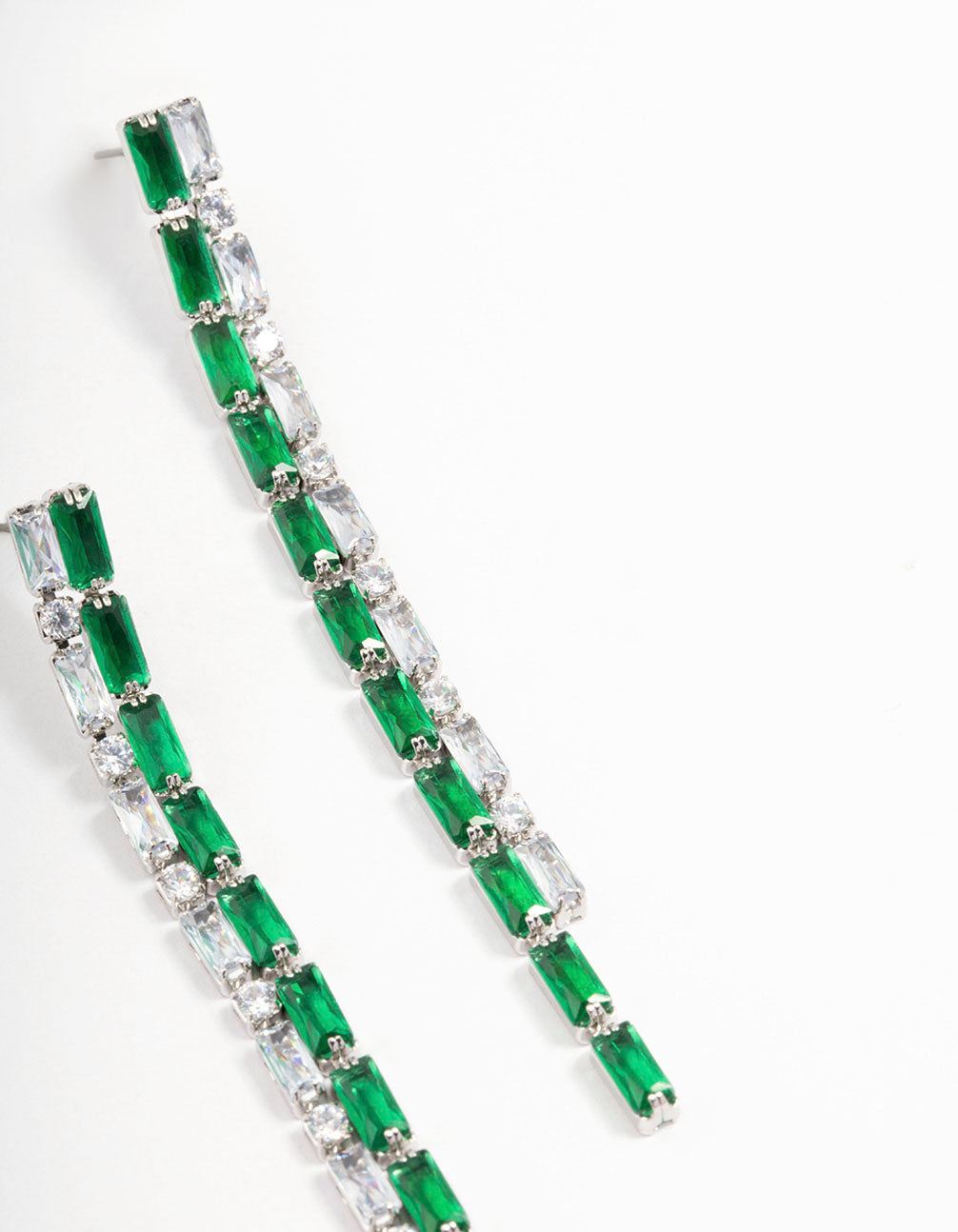 Silver Cubic Zirconia Double Row Baguette Drop Earrings