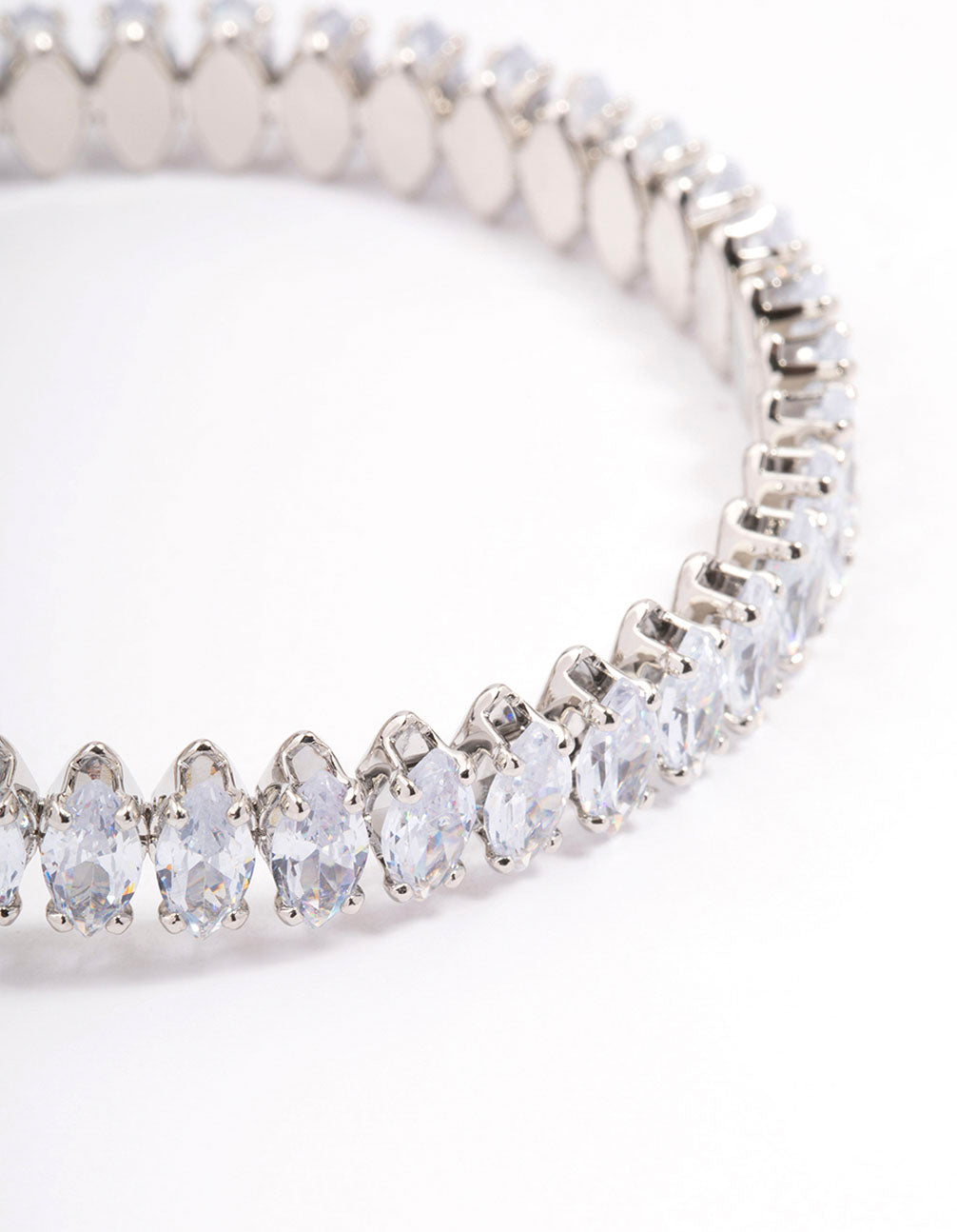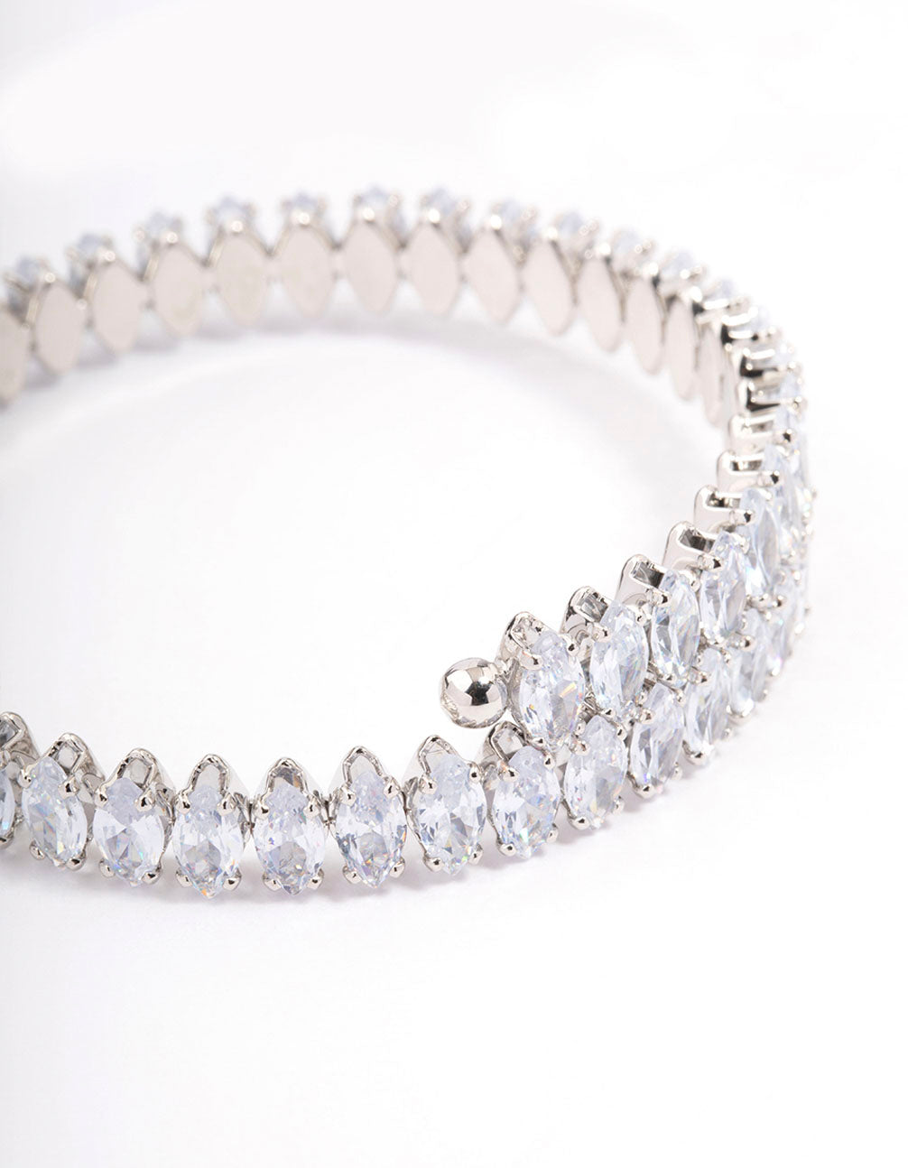Silver Cubic Zirconia Navette Stone Wrist Cuff