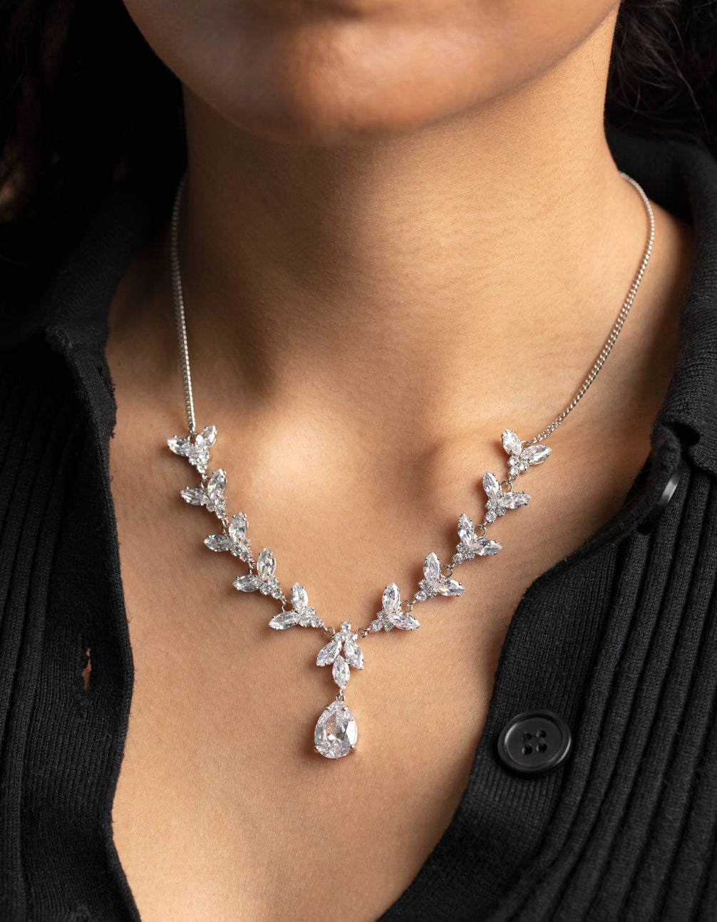Silver Cubic Zirconia Teardrop Lariat Necklace