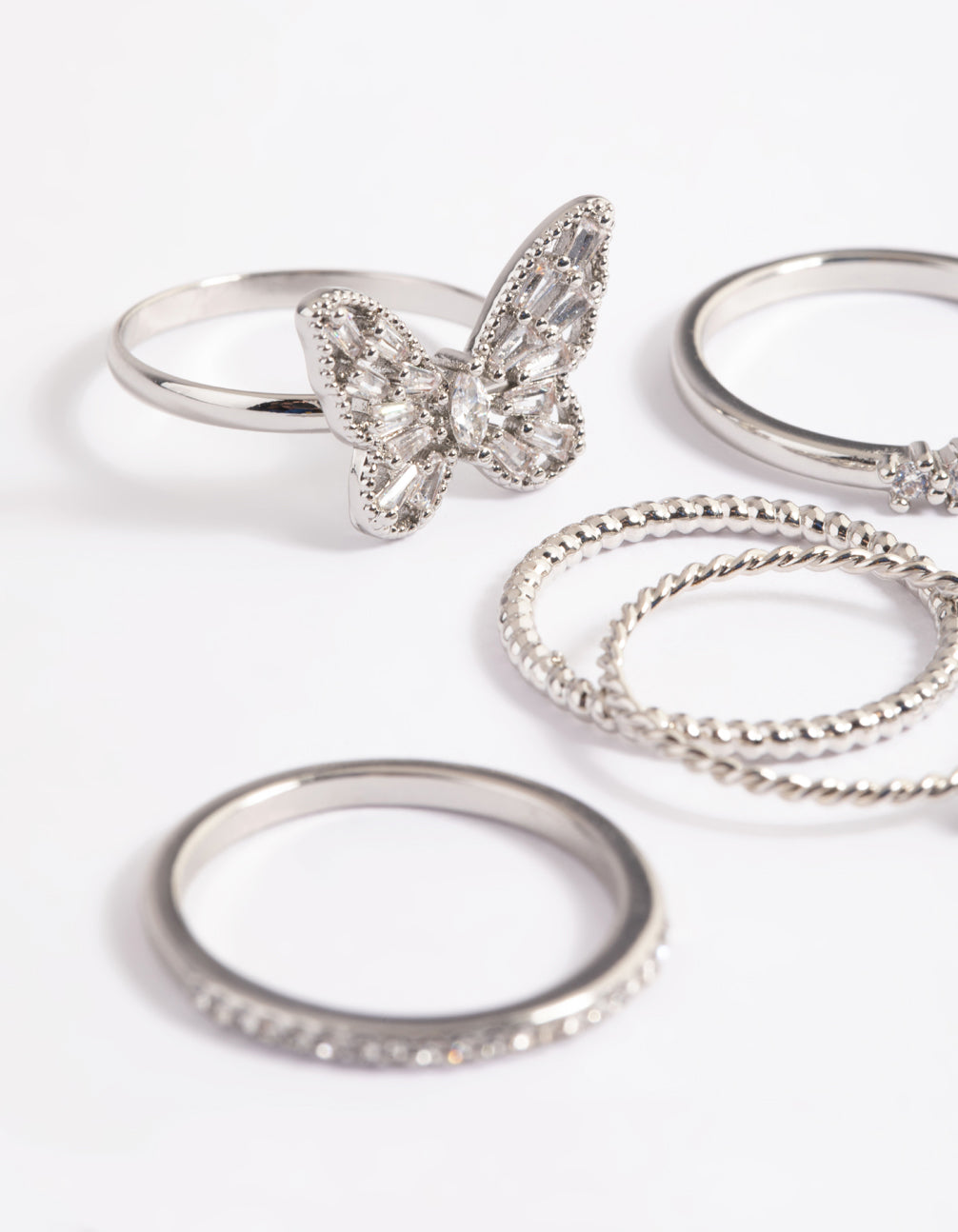 Silver Cubic Zirconia Butterfly Ring Stack Pack Silver Cubic Zirconia Butterfly Ring Stack Pack Silver Cubic Zirconia Butterfly Ring Stack Pack