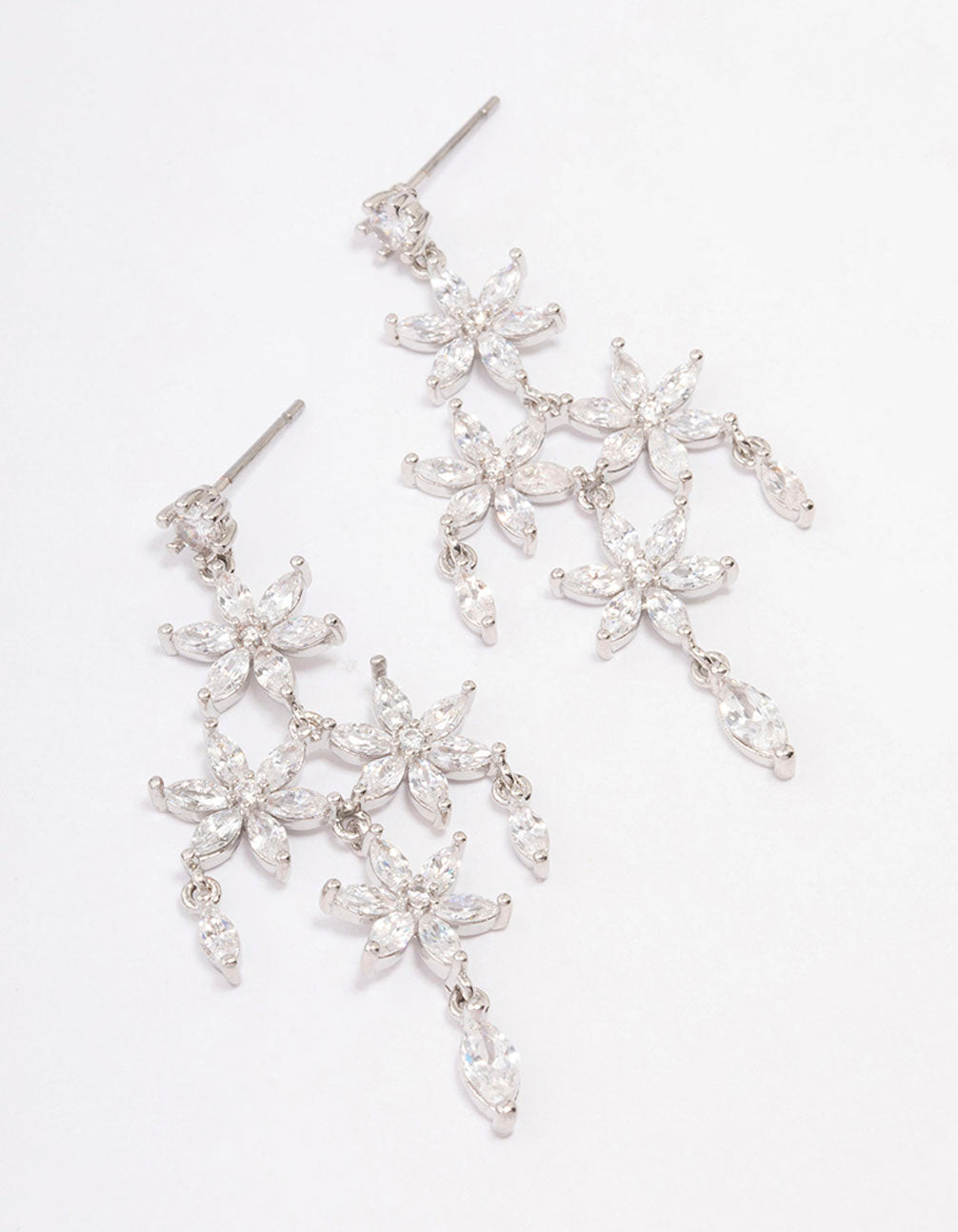 Silver Cubic Zirconia  Flower Chandelier Drop Earrings Silver Cubic Zirconia  Flower Chandelier Drop Earrings Silver Cubic Zirconia  Flower Chandelier Drop Earrings