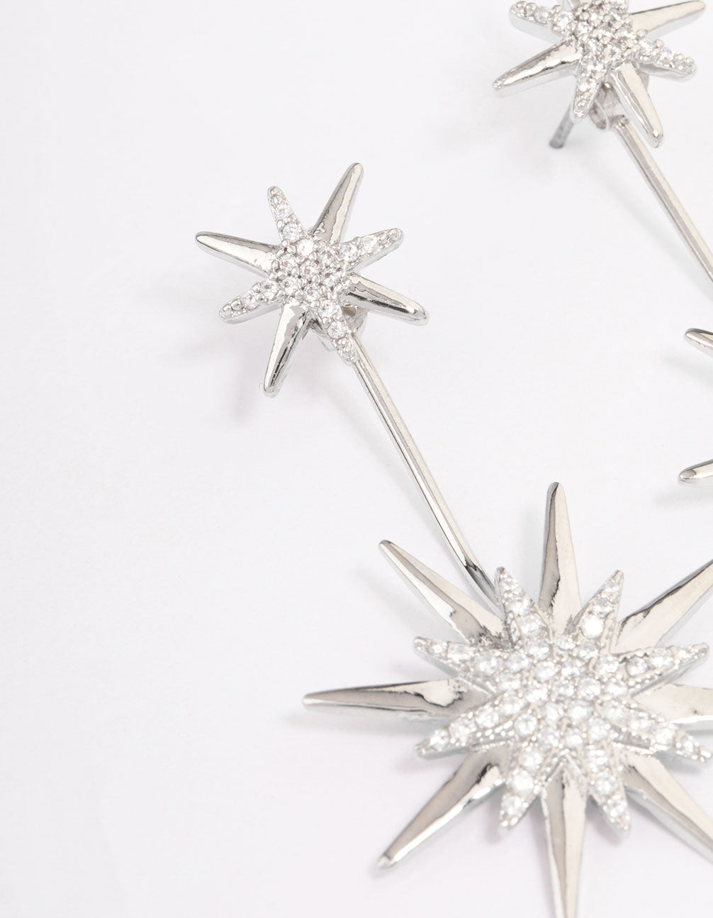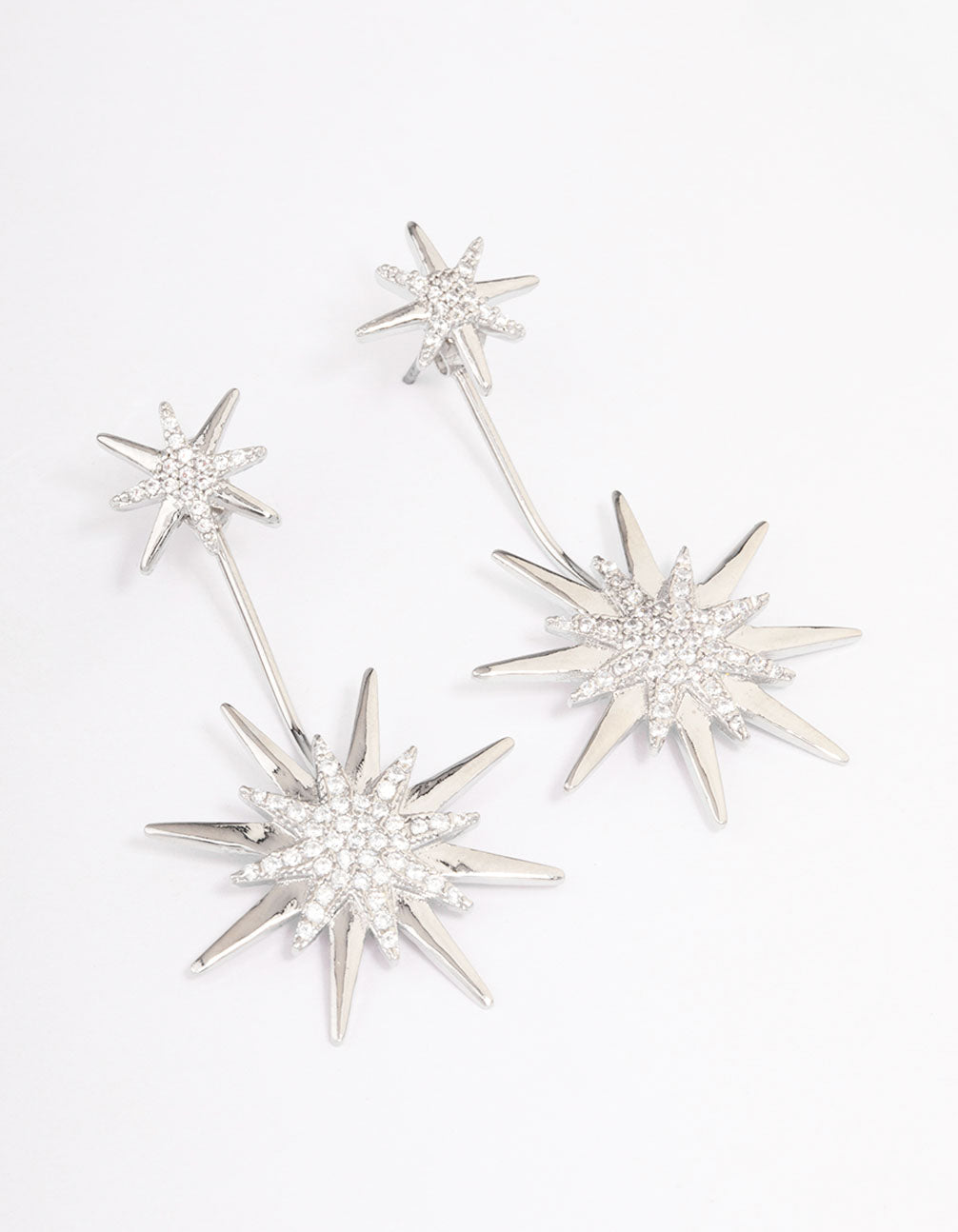 - These drop earrings feature a radiant silver setting with mixed star-shaped cubic zirconia stones for a celestial look. Pair them with a statement necklace for a cohesive finish to your ensemble.
