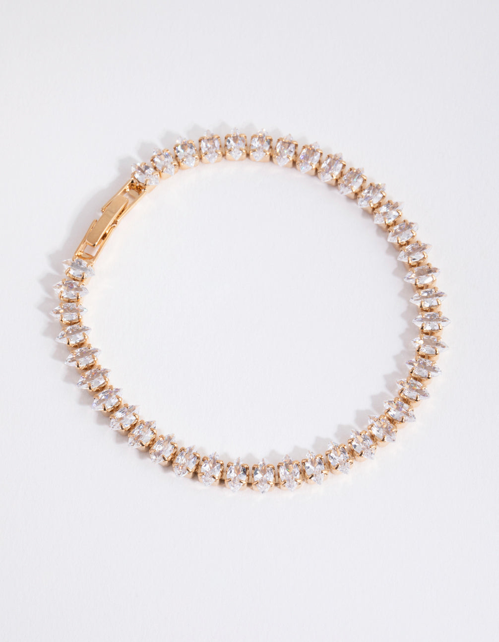 Gold Cubic Zirconia Navette Tennis Bracelet
