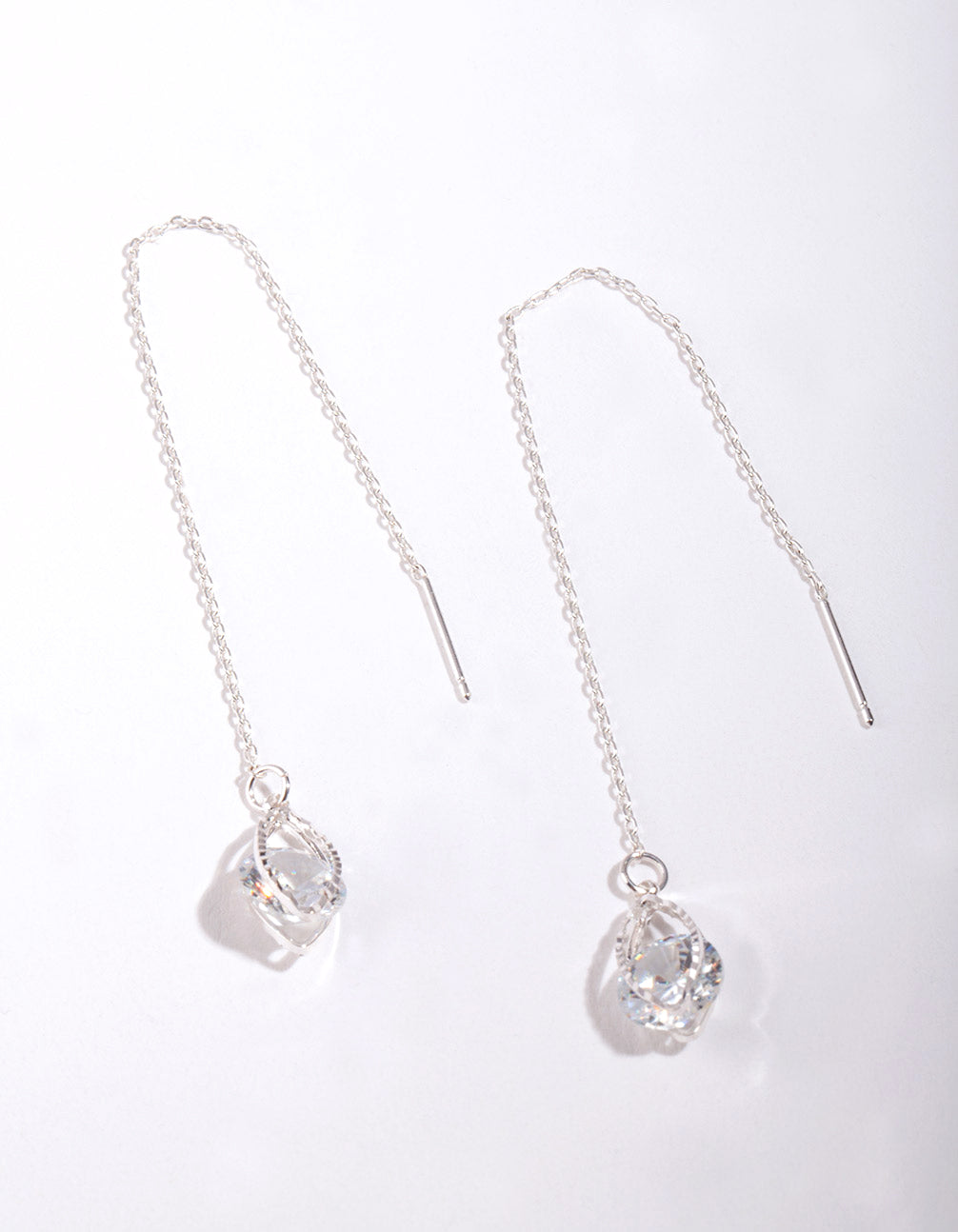 Silver Cubic Zirconia Chain Teardrop Earrings