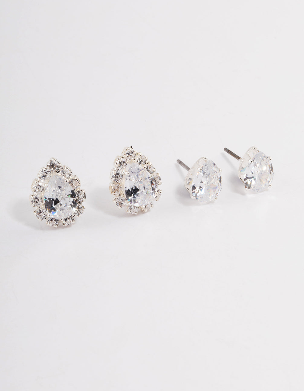 Silver Fancy Cubic Zirconia Pear Earrings Pack