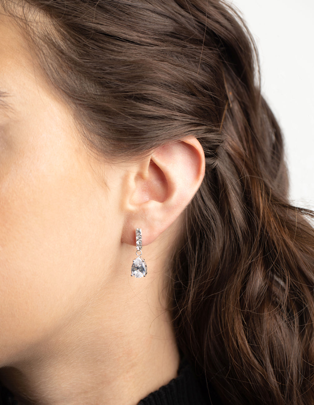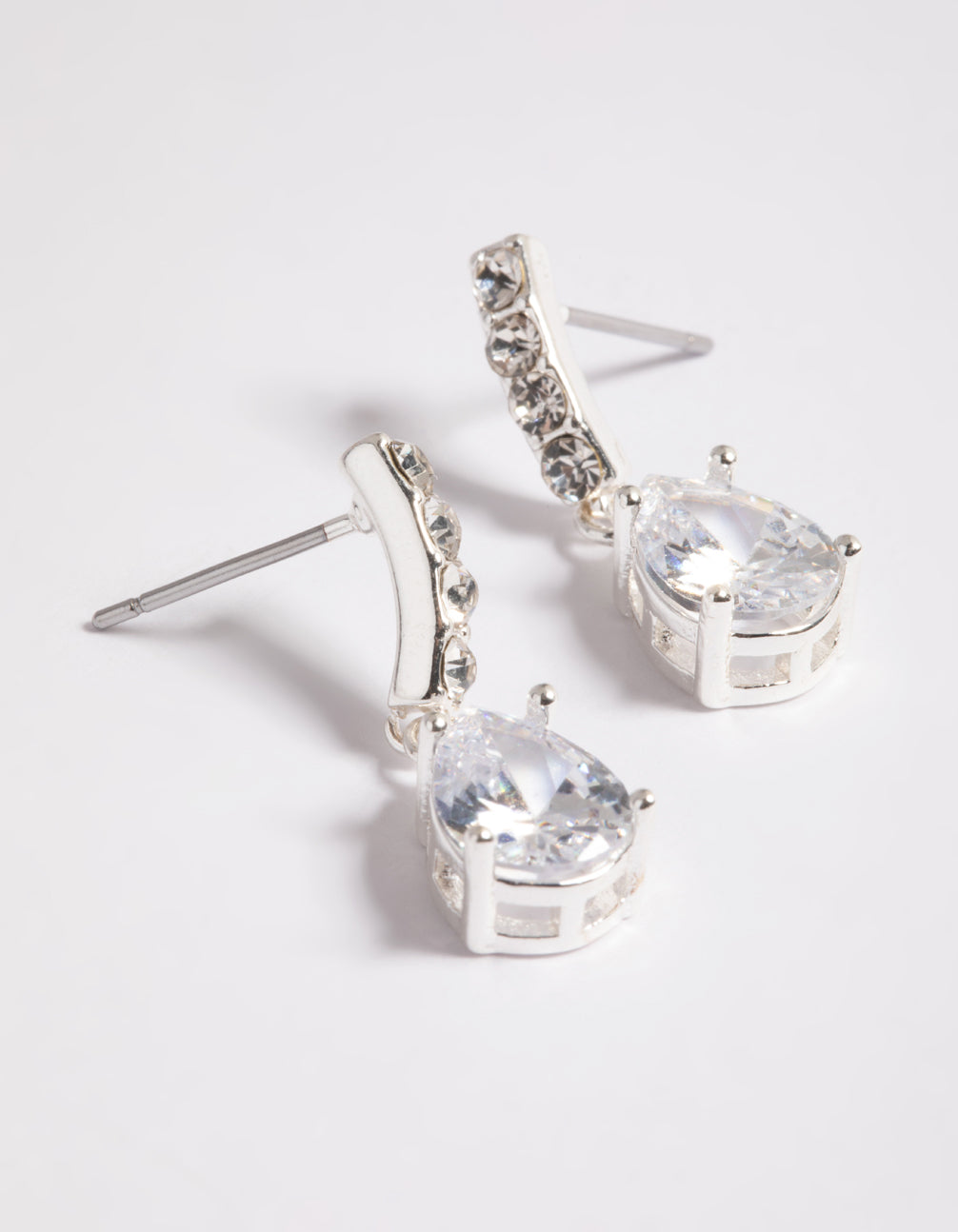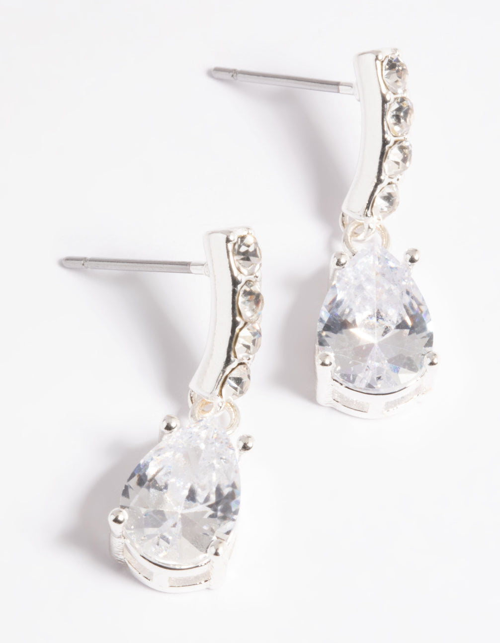 Silver Cubic Zirconia Pear Cut Drop Earrings