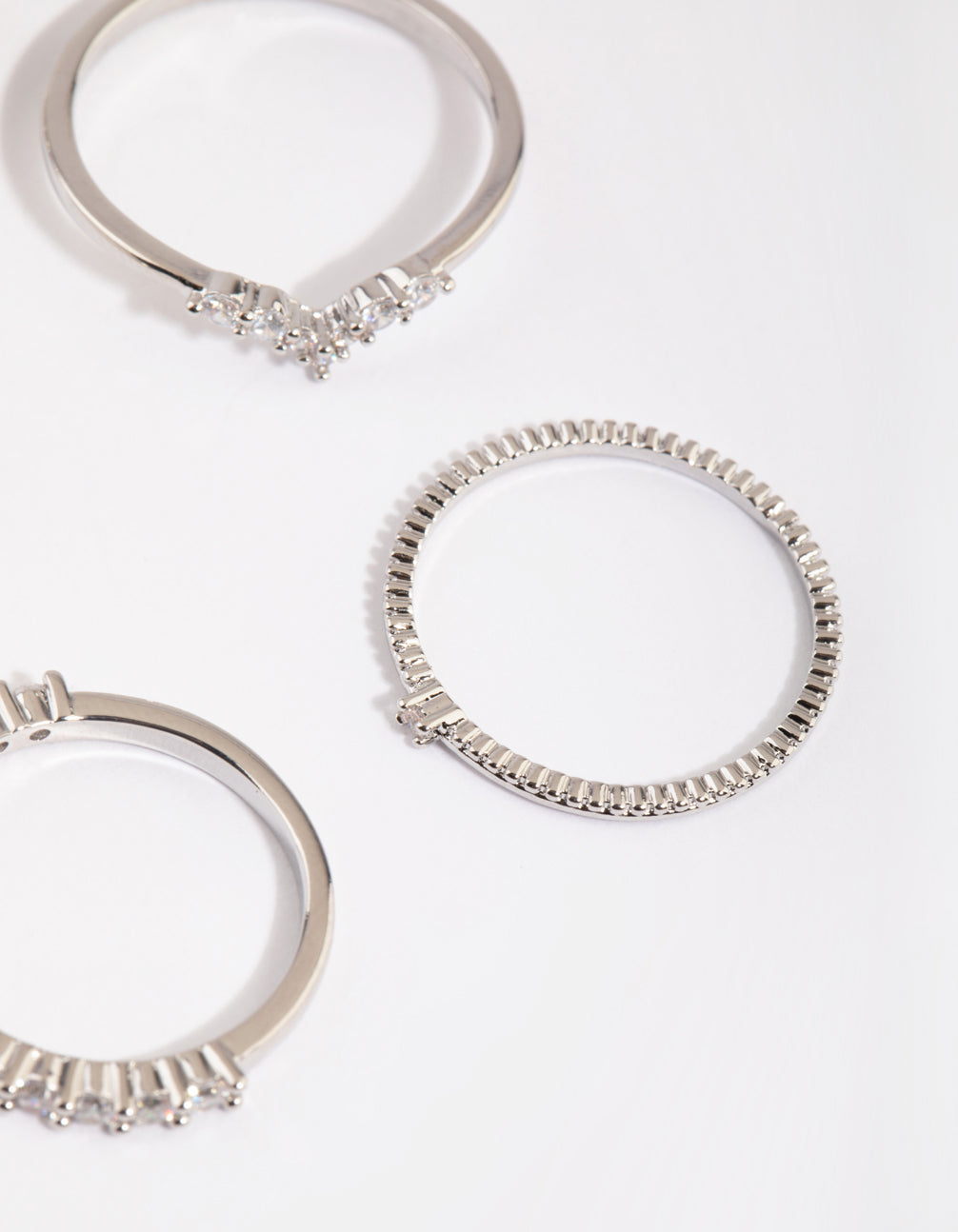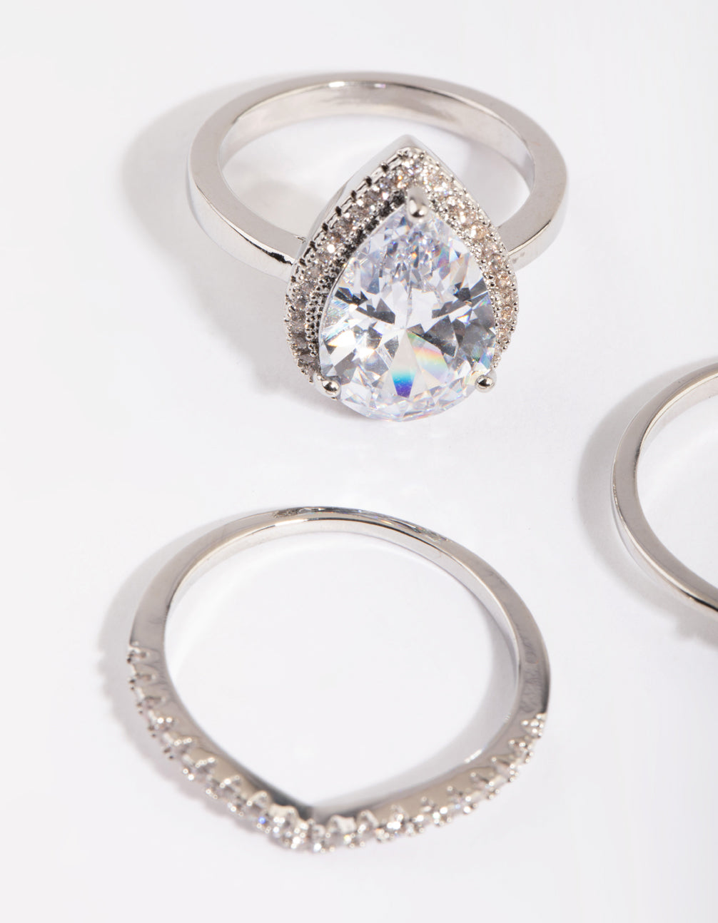 Silver Cubic Zirconia Statement Ring 5-Pack