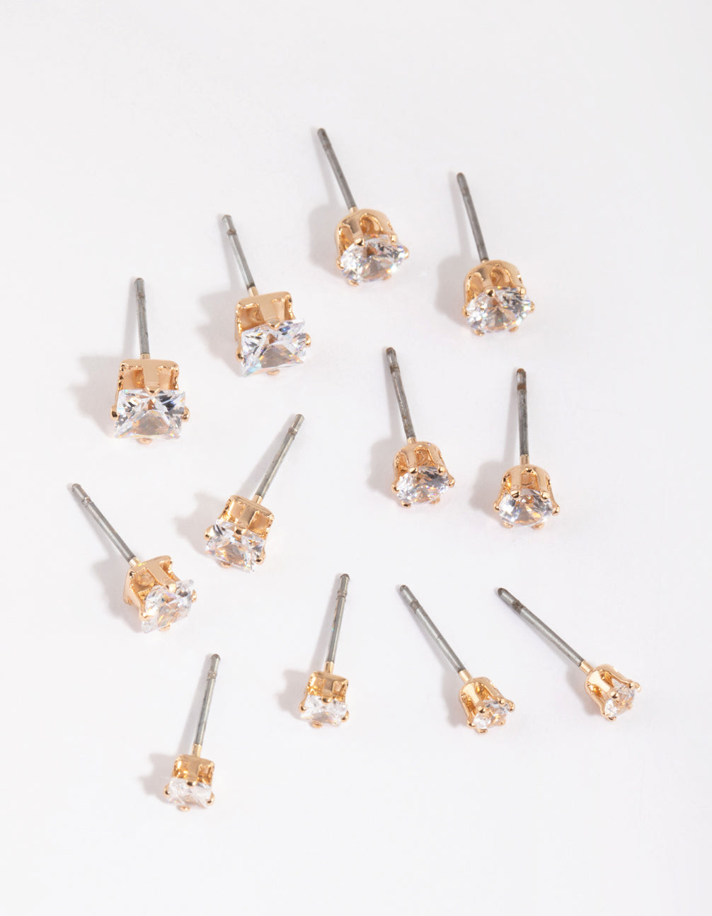 Gold Cubic Zirconia Classic Stud Earring 6-Pack