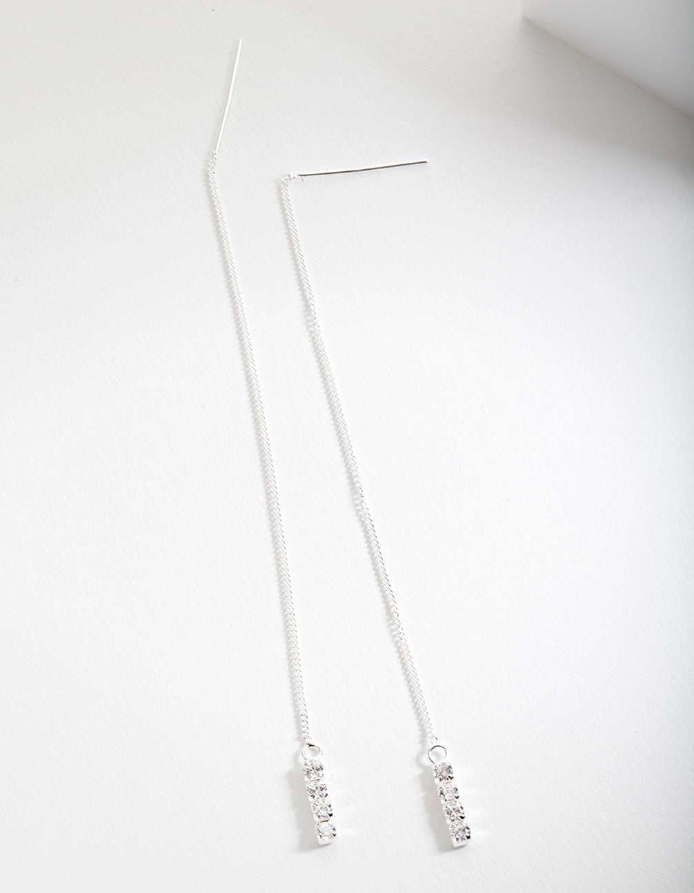 Sterling Silver Cubic Zirconia Thread-Through Earrings Sterling Silver Cubic Zirconia Thread-Through Earrings Sterling Silver Cubic Zirconia Thread-Through Earrings