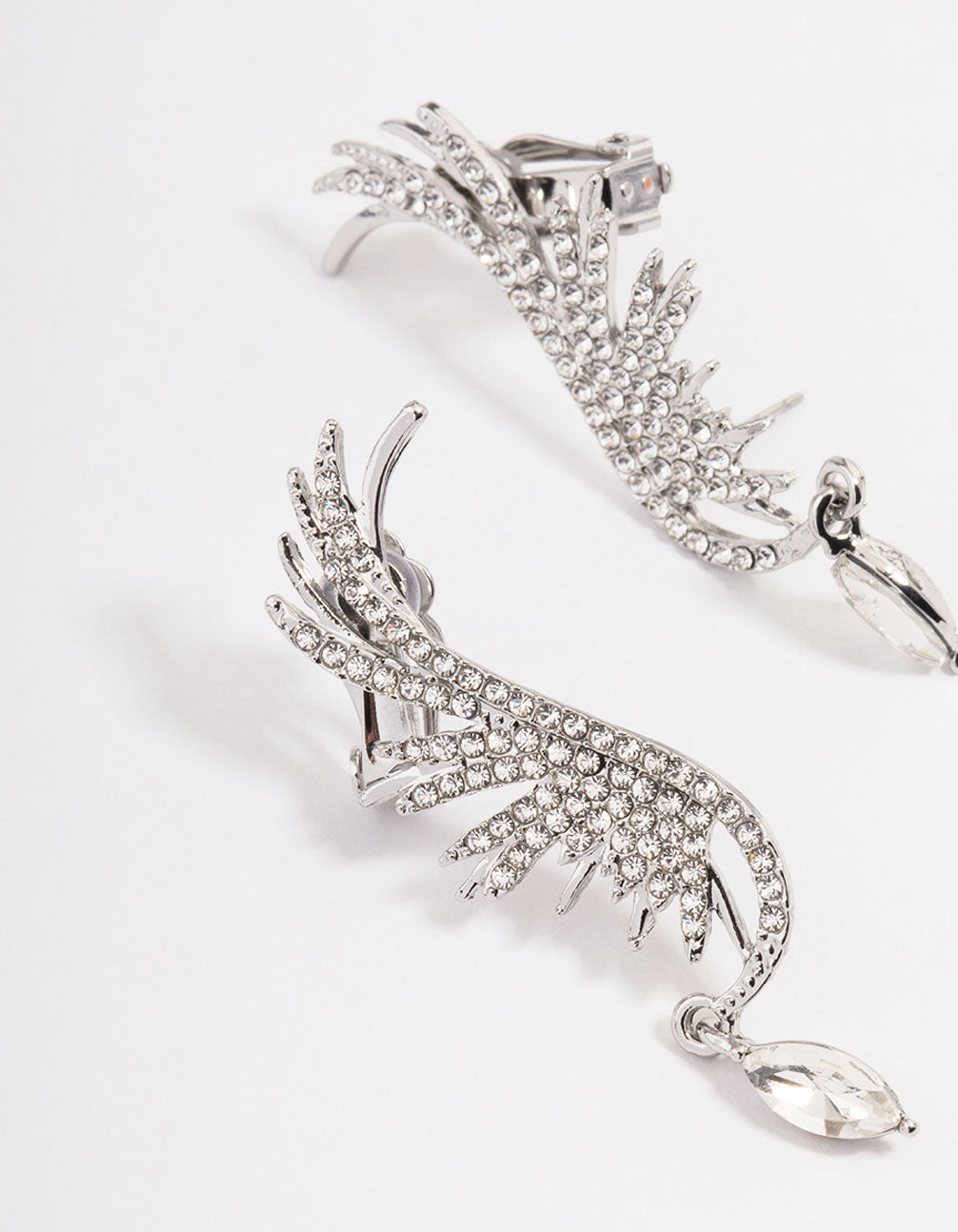 - Style these diamante wing drop cuff earrings with a curated ear stack for a layered look.