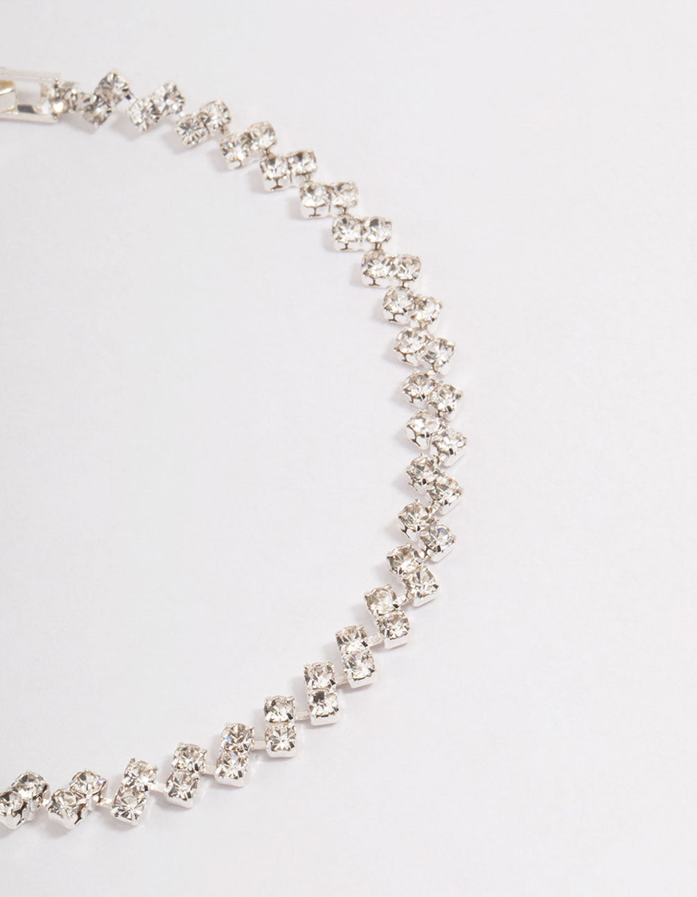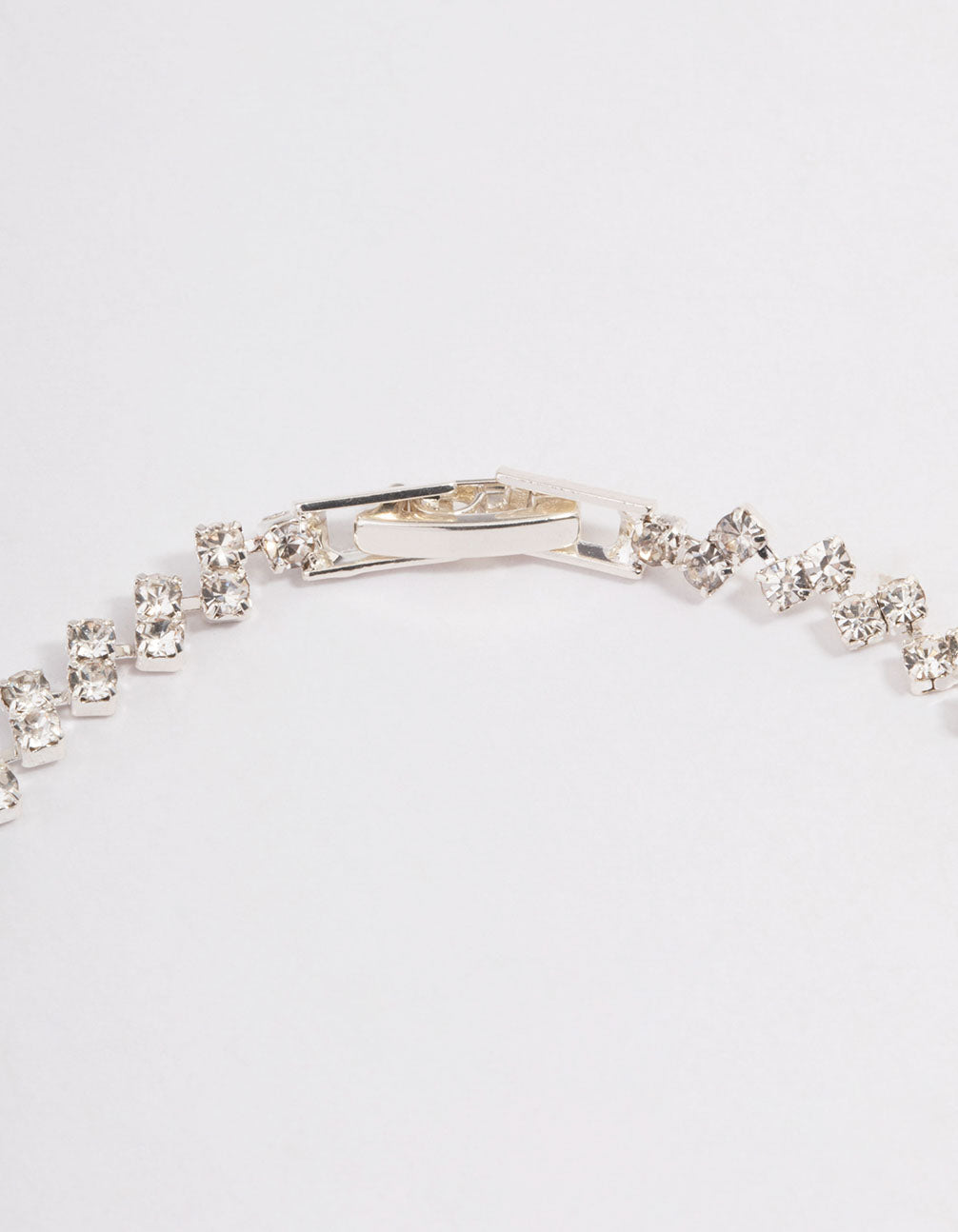 Silver Double Dangle Diamante Petal Tennis Bracelet