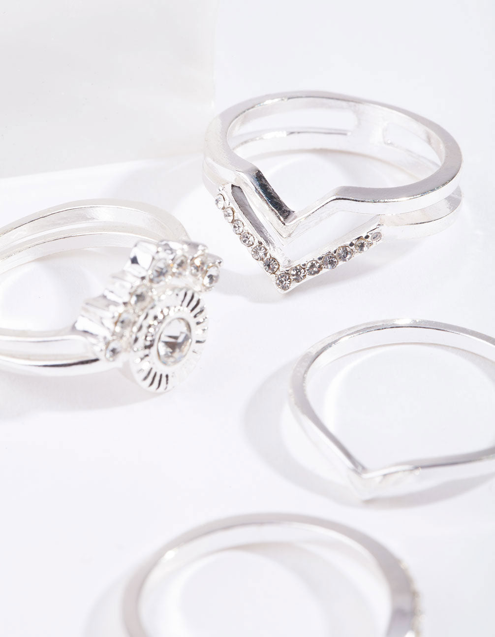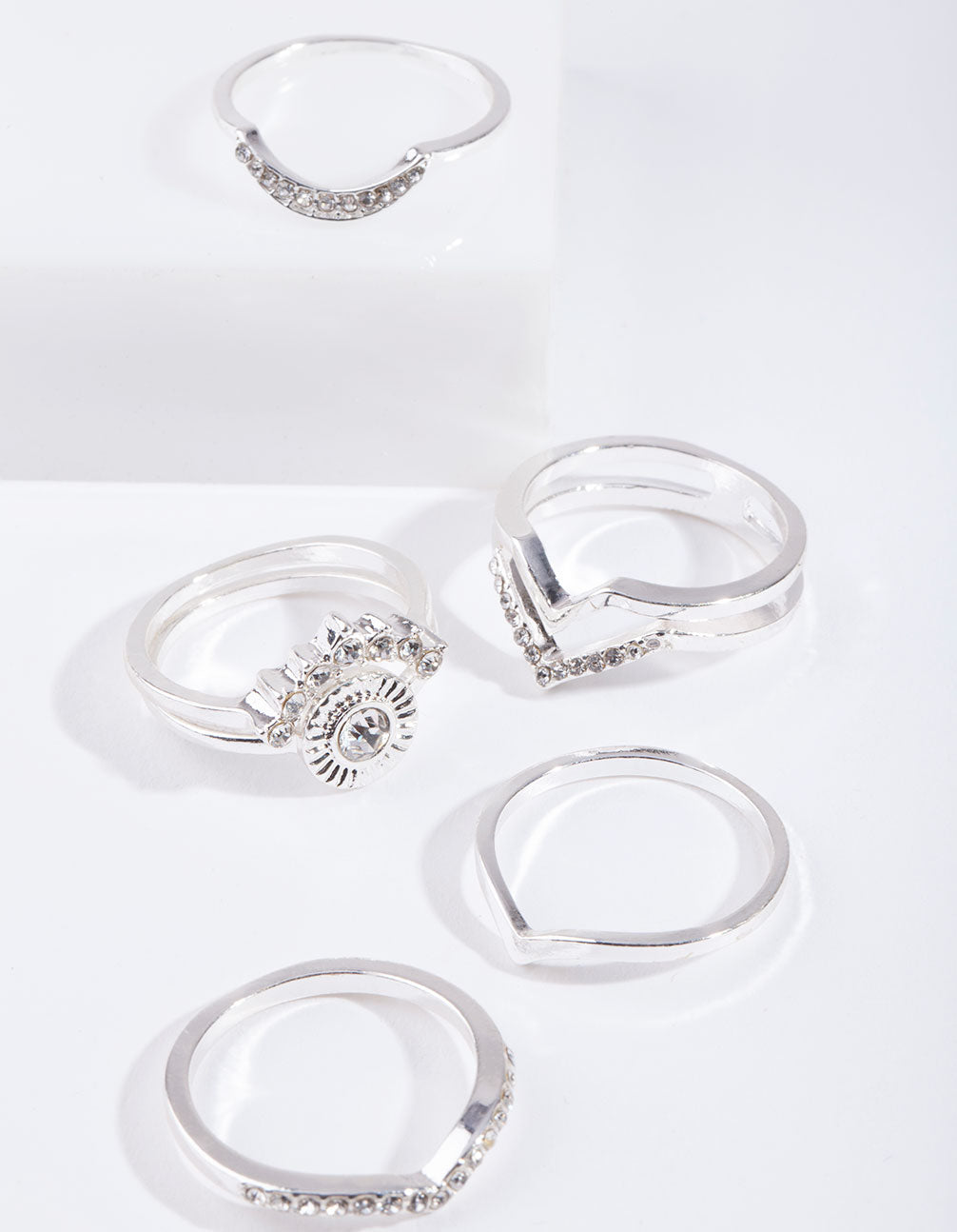 Elevate your daily ensemble with this silver diamante ring 7 pack.