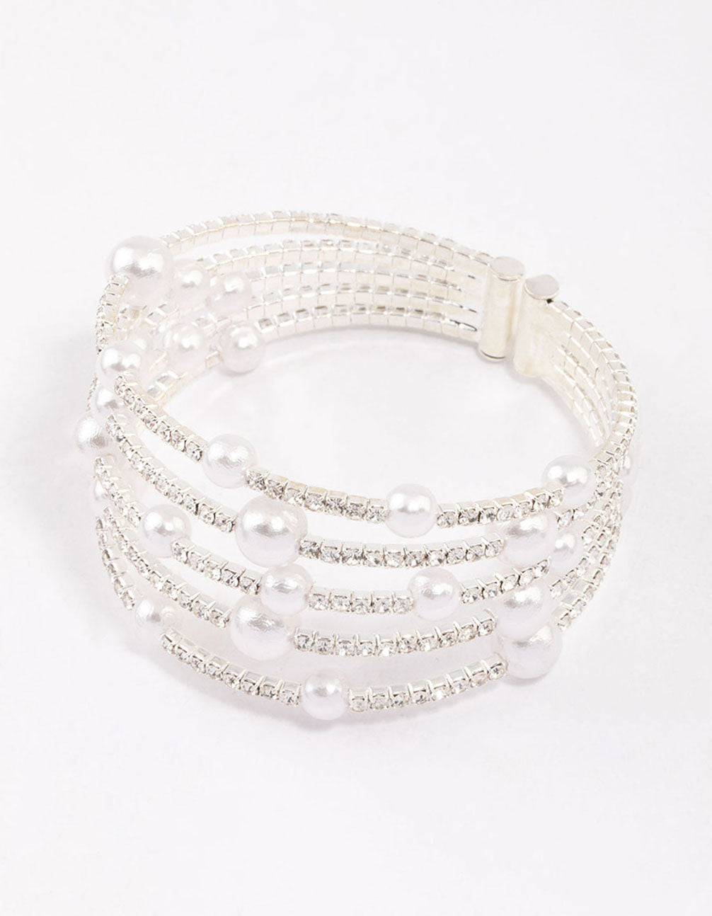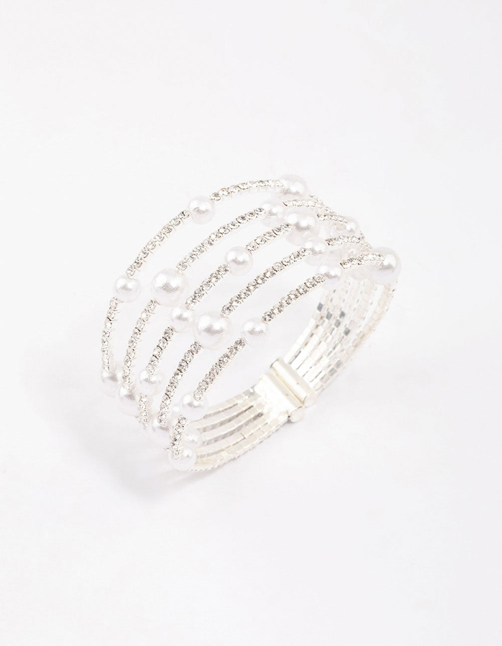 Silver Diamante & Pearl Decorative Wrist Cuff Silver Diamante & Pearl Decorative Wrist Cuff Silver Diamante & Pearl Decorative Wrist Cuff