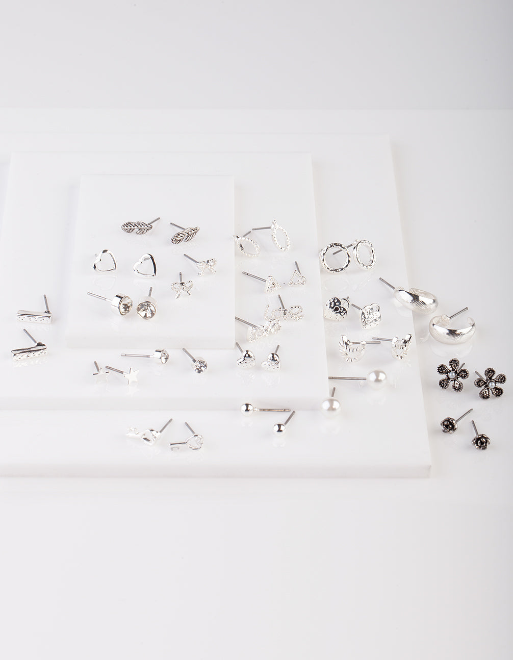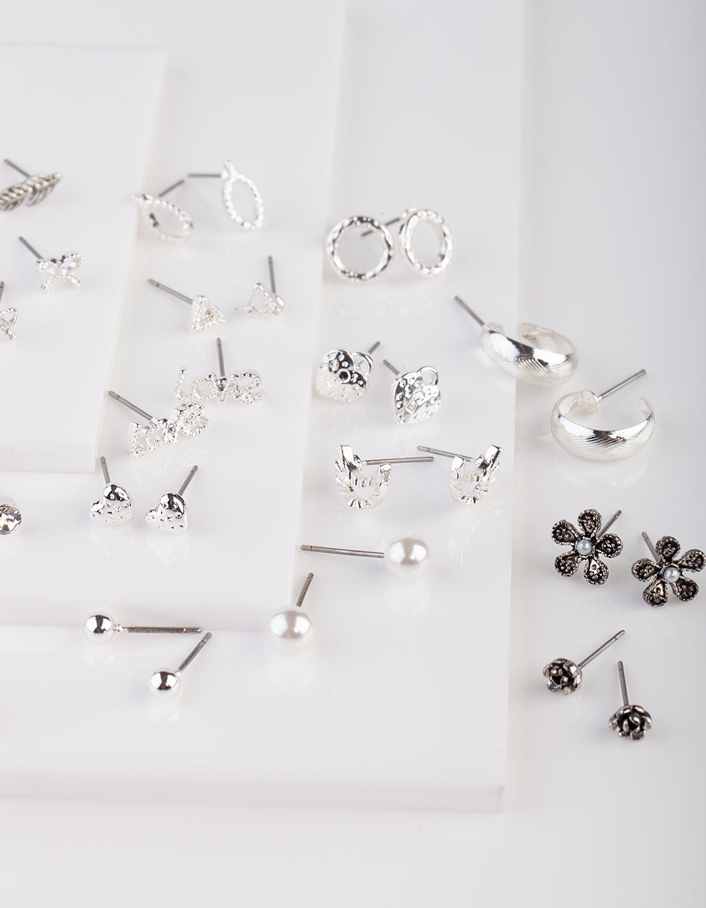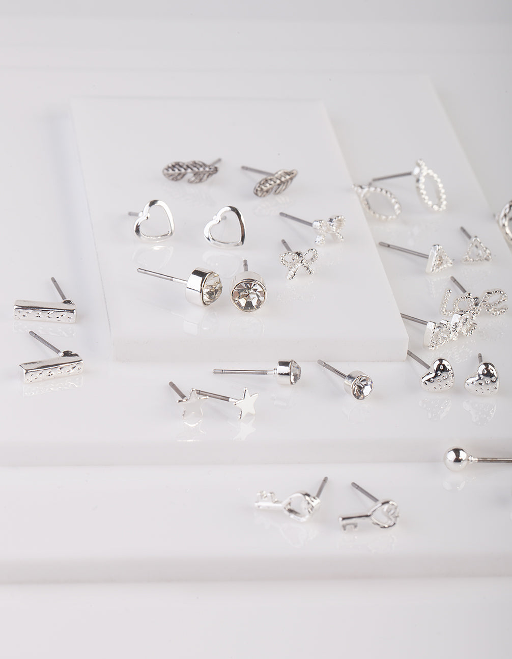 Add some fun to your outfit with this silver-toned hearts and stars stud earring pack.