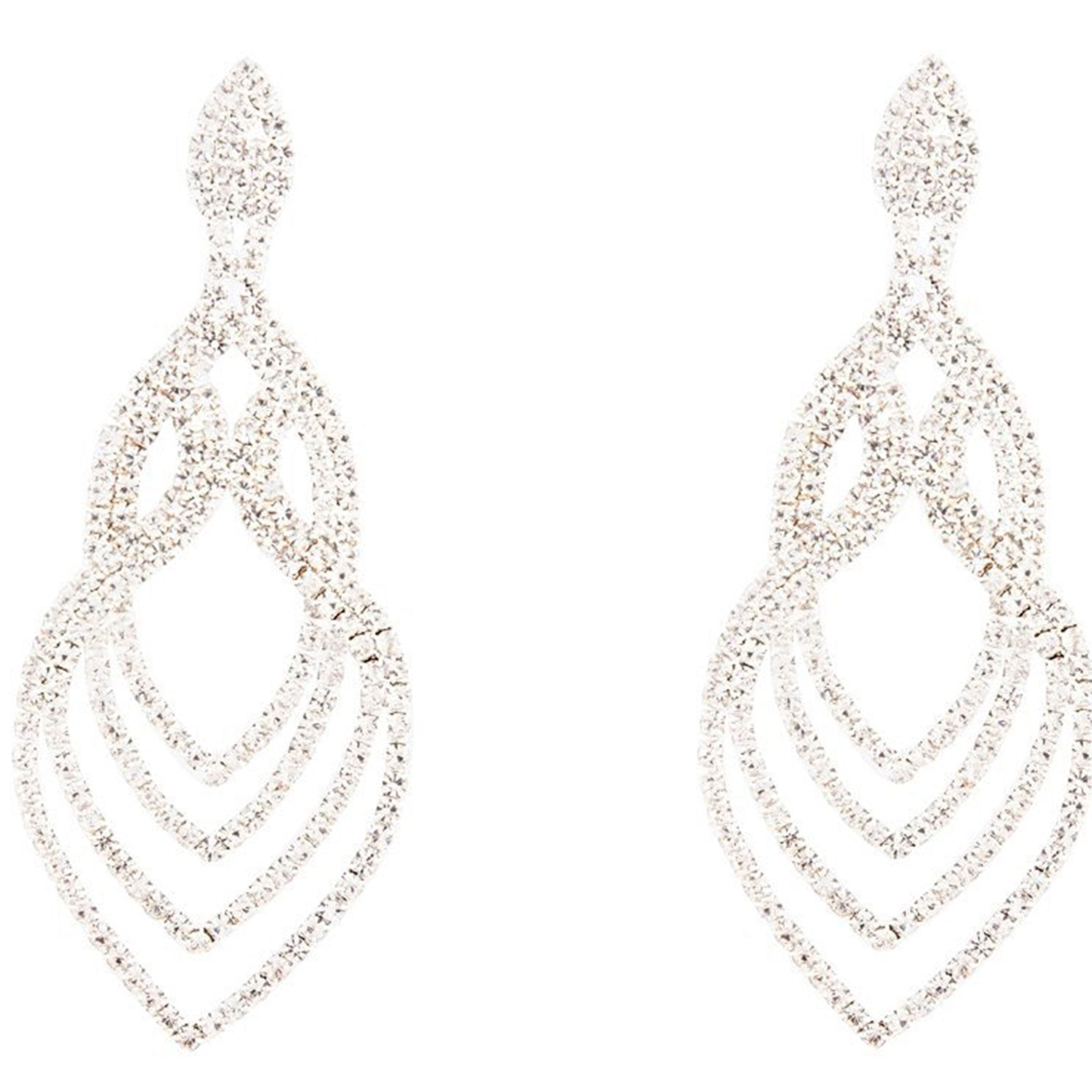 Elevate your look with these silver-toned diamante encrusted layered teardrop earrings.