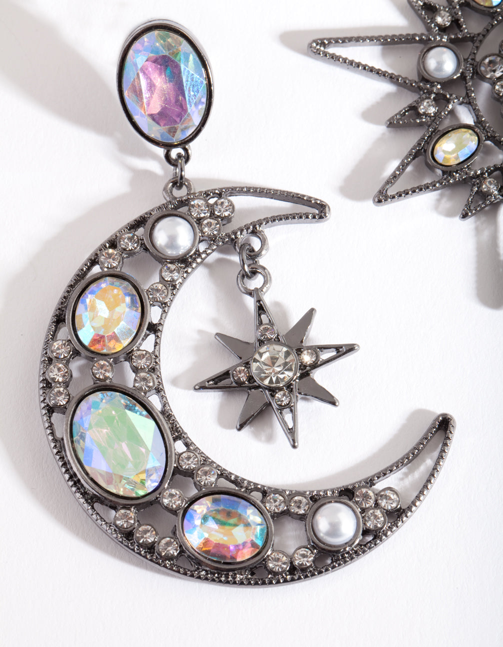 Elevate your look with this gunmetal-toned star and moon asymmetrical earring.