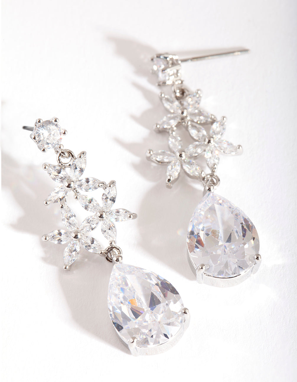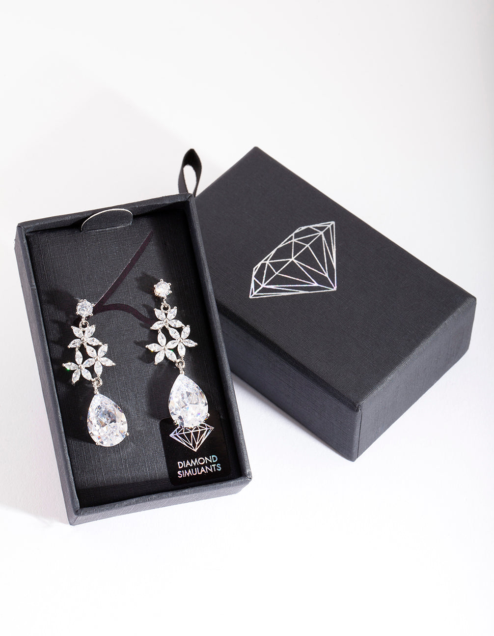 Lovisa diamond simulants are cut to be indistinguishable to the human eye from a true diamond. These drops are silver toned, and they feature a flower teardrop design that's embellished with diamond simulants.