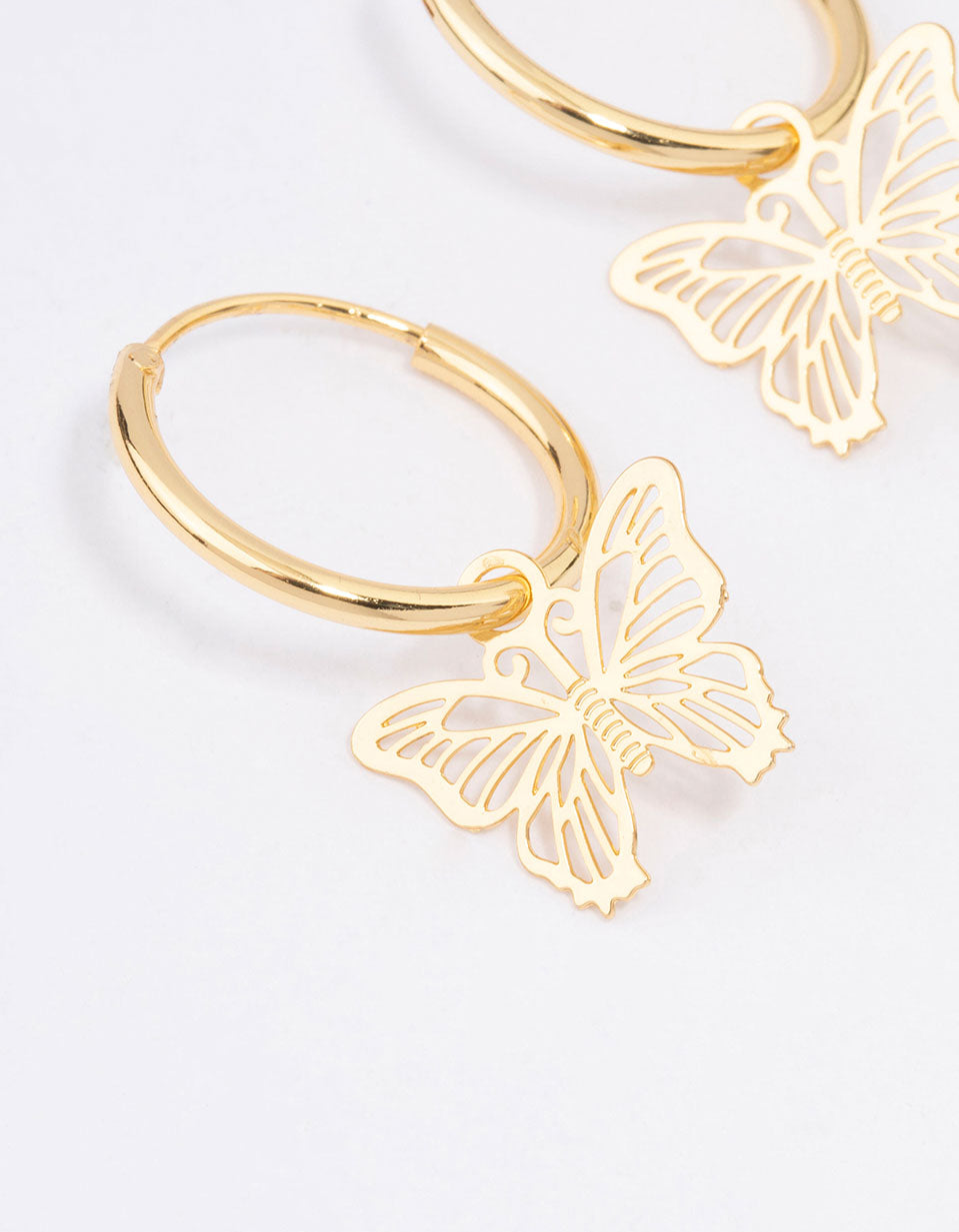 Style these Gold Plated Filigree Butterfly Hoop Earrings with a simple butterfly pendant necklace for a signature and refined look.