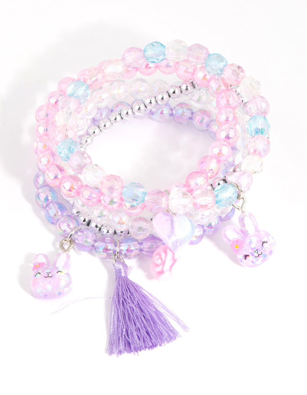 Kids Beaded Rose Bunny Stretch Bracelet 5-Pack