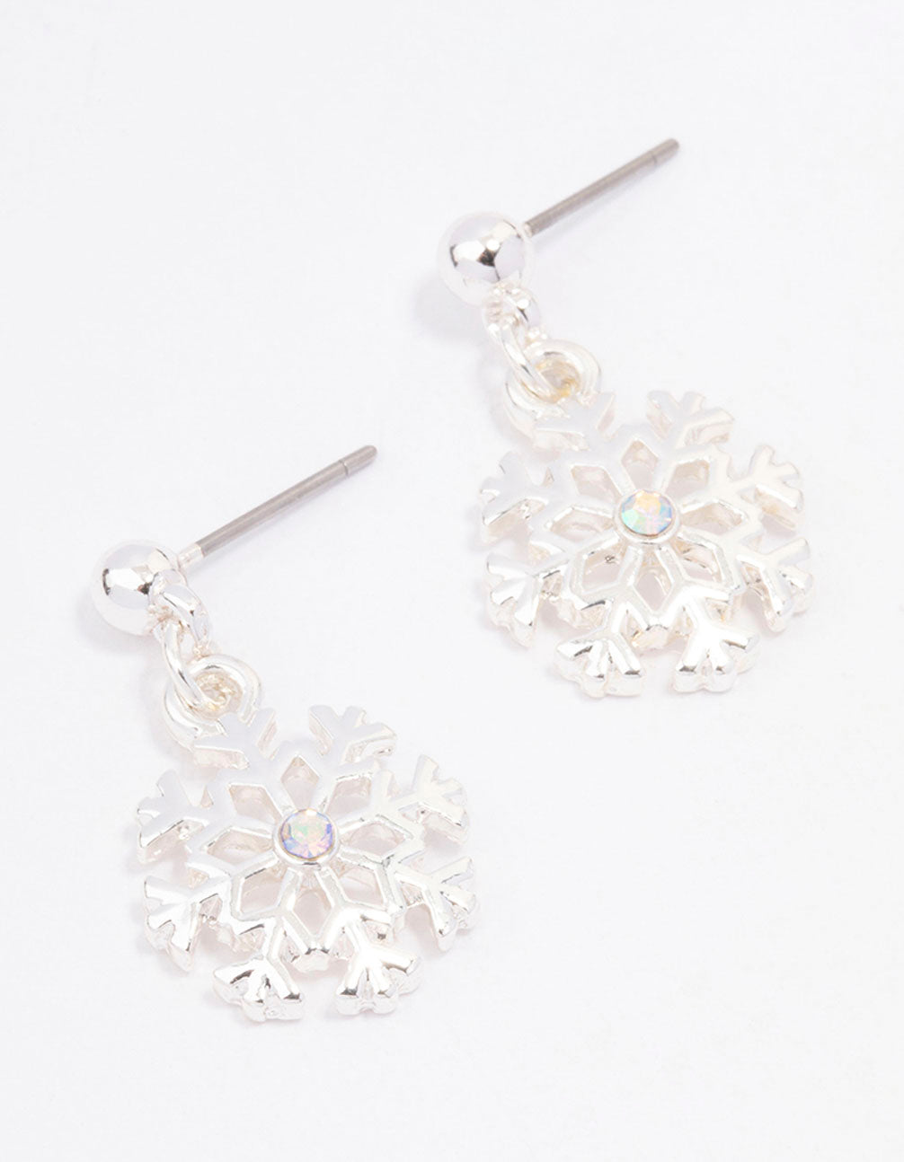 - Style these Silver Snowflake Drop Earrings for a fun and festive finish to your holiday outfits this Christmas.
