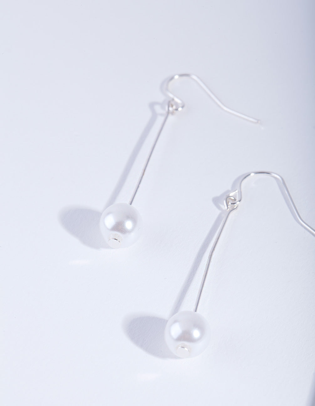 The perfect blend of feminine and contemporary design, fine enough for everyday wear. This earring features a fine metal pin drop in silver tone and is accented by a small pearly bead.