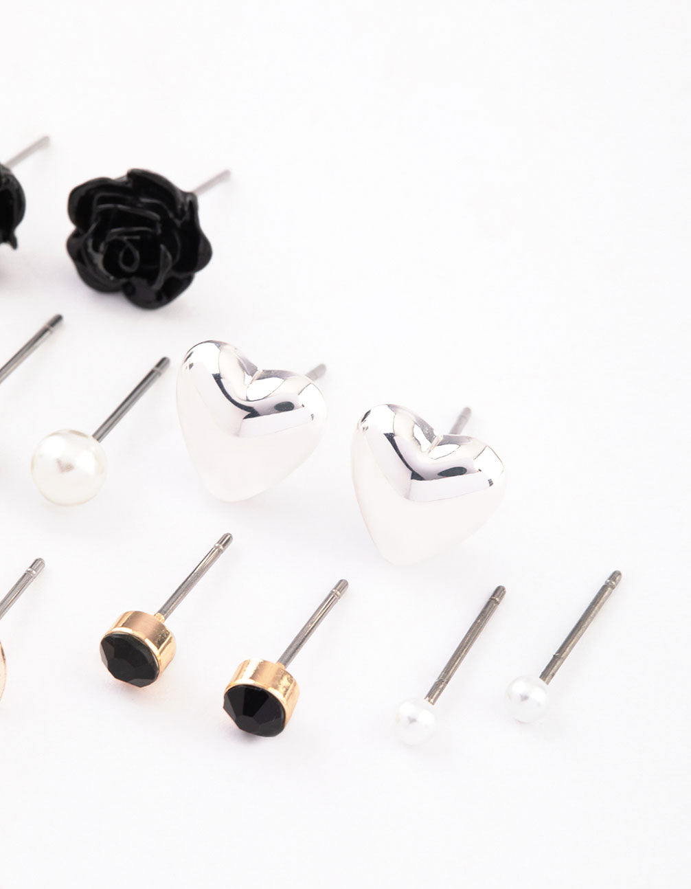 Mixed Metal Pearl Heart & Flower Earrings 8-Pack