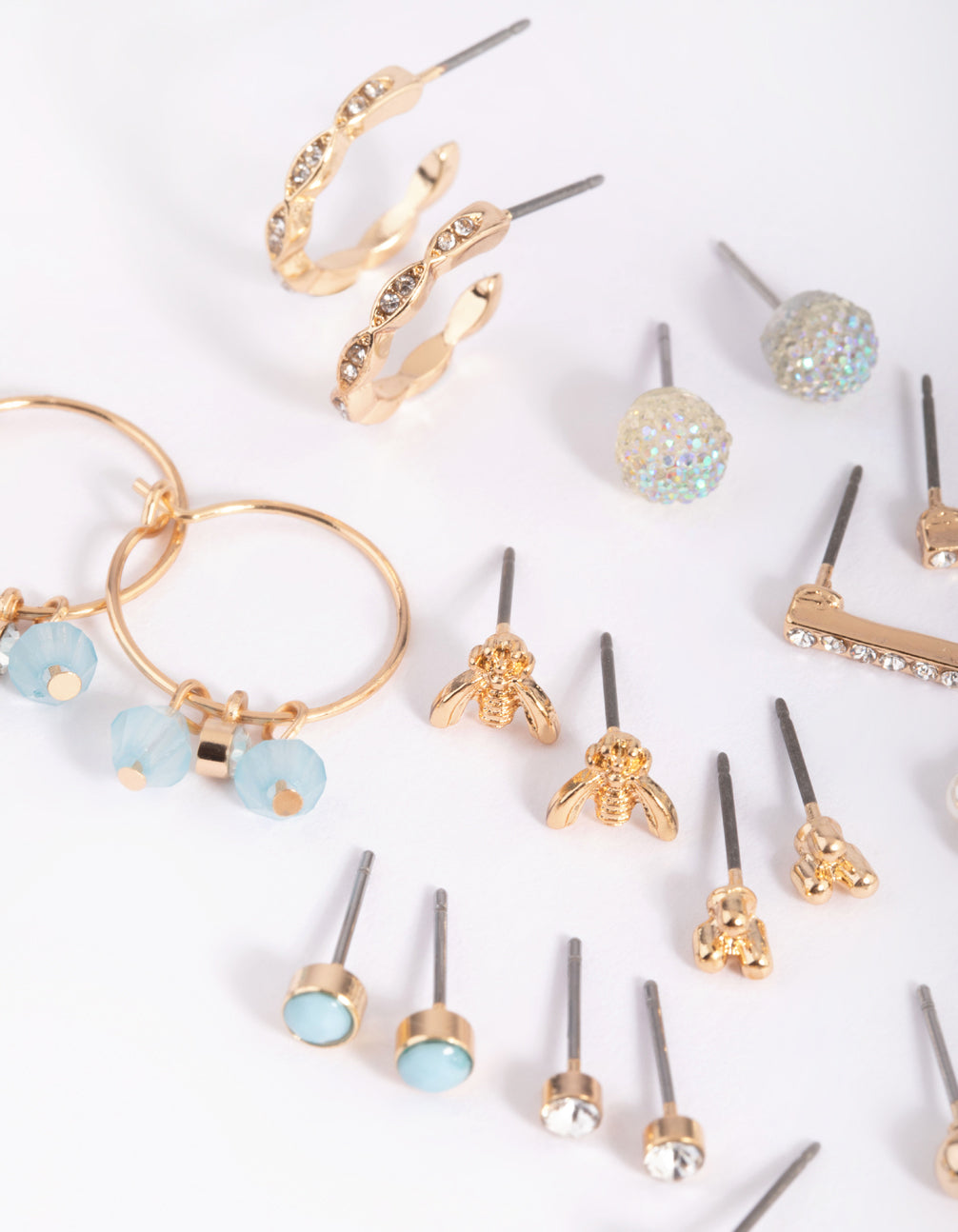 Mix them, match them, stack them! This earring pack features a variety of designs. Wear multiple pairs together, mix it up and wear a different earring on each ear or stack them up in a curated earring look. The options are endless, get creative!