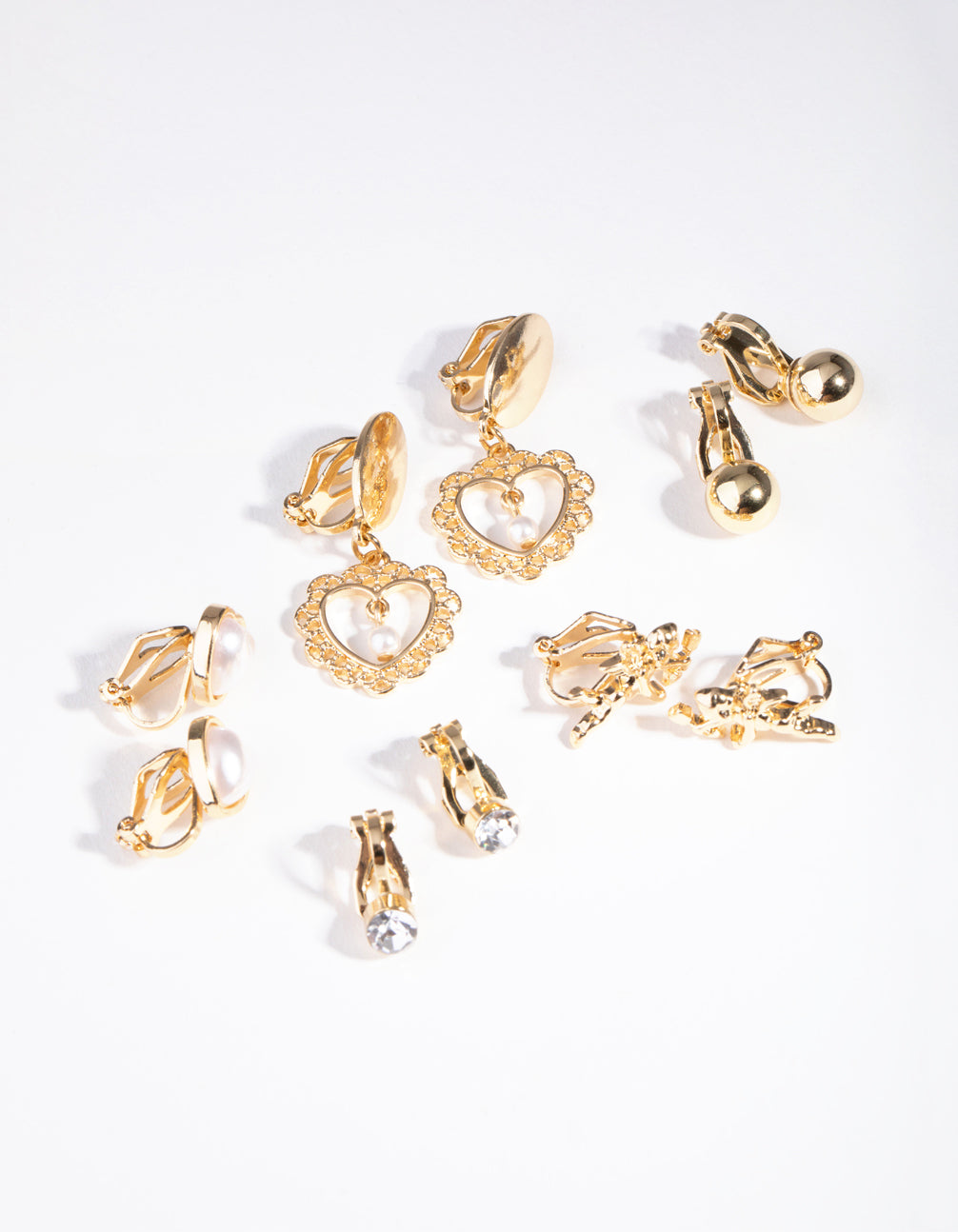 Gold Faux Pearl Heart Clip On 5-Pack Earring Gold Faux Pearl Heart Clip On 5-Pack Earring Gold Faux Pearl Heart Clip On 5-Pack Earring