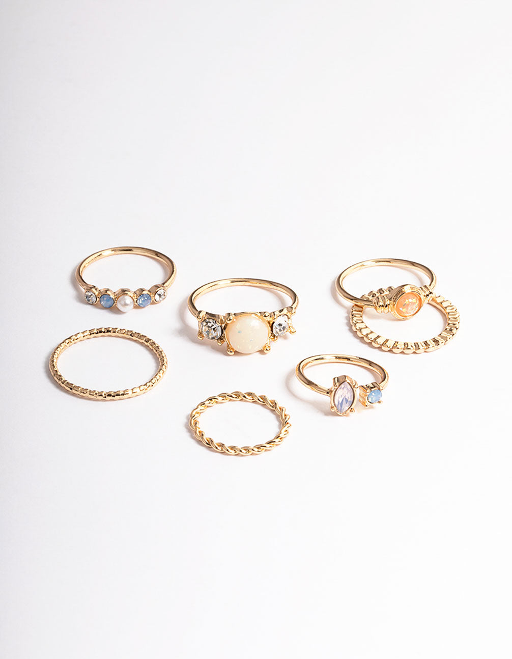 Gold Mixed Texture & Stone Ring Pack