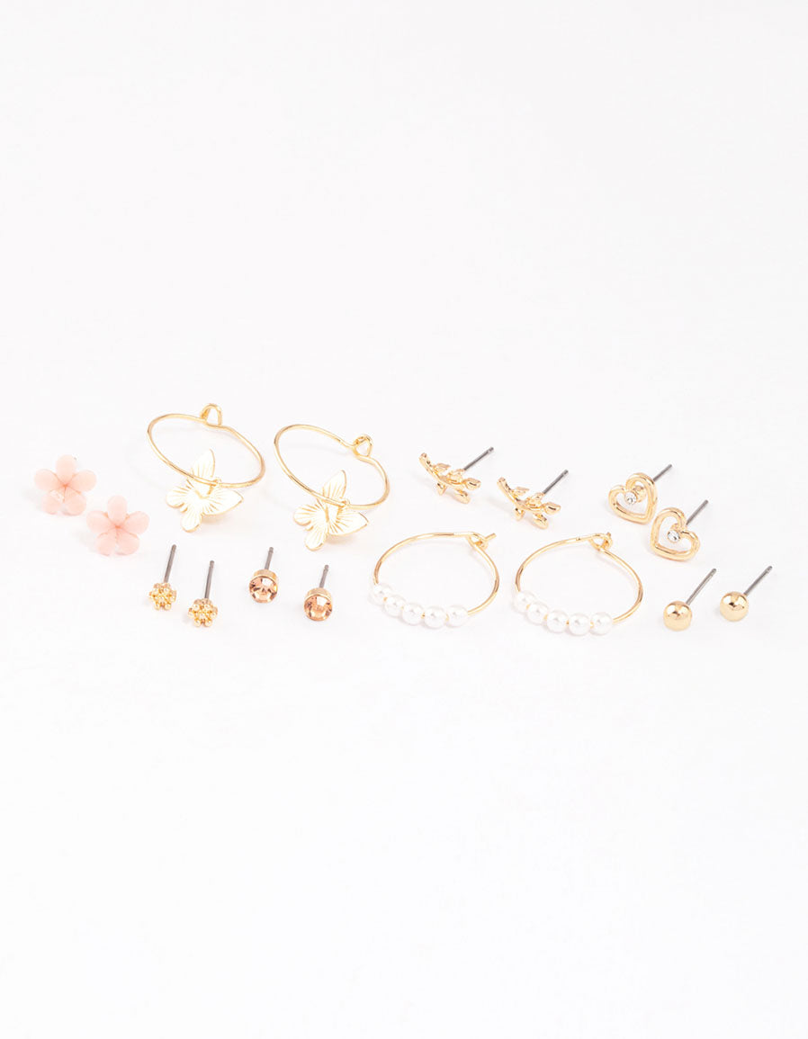Gold Pearl Butterfly & Flower Earrings 8-Pack