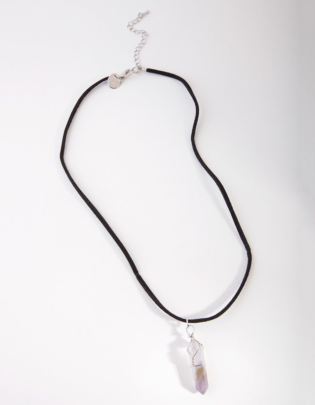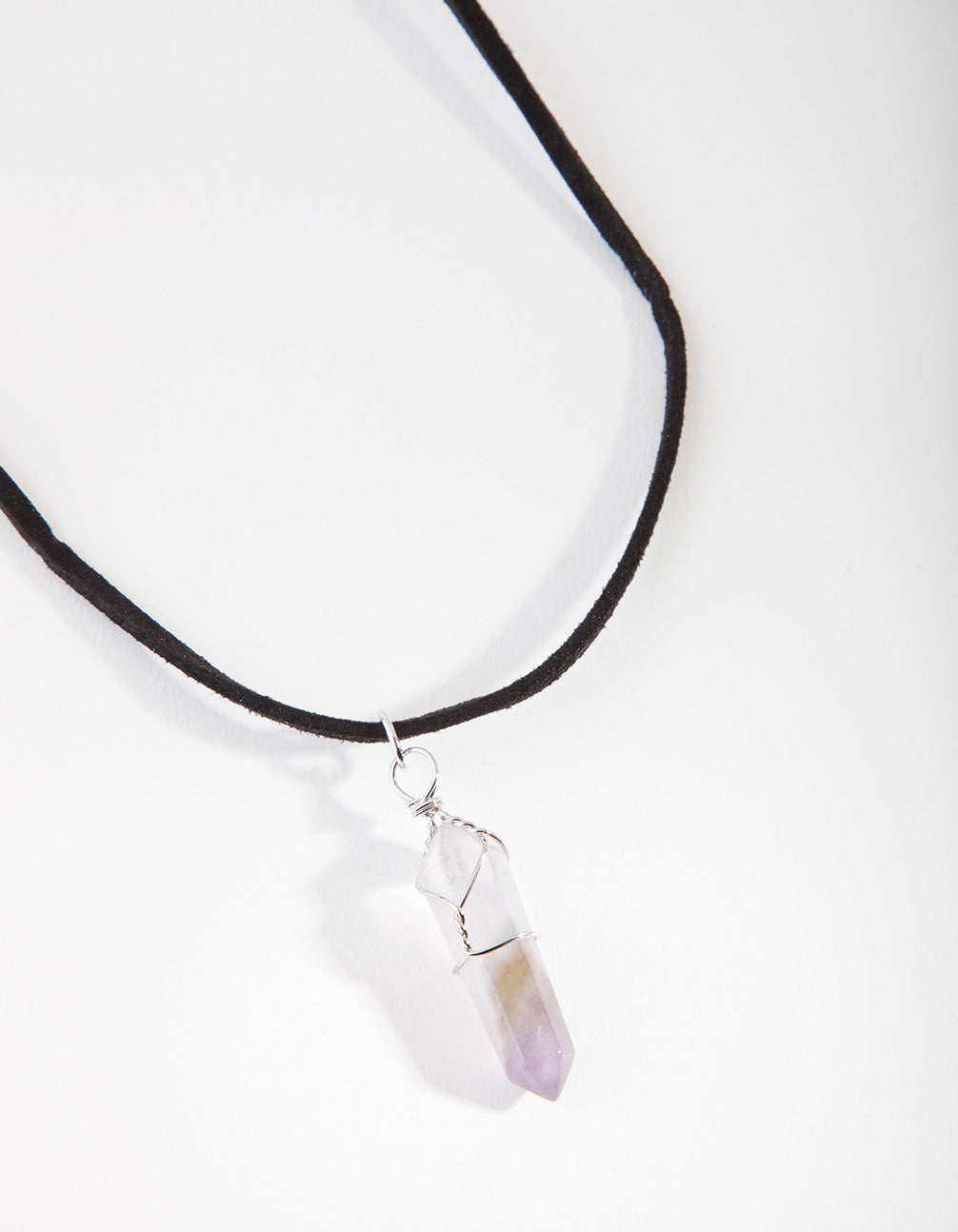 Amethyst is the birthstone of February and is said to have calming effects. This lovely silver-toned necklace features a cased small shard design adorned with a semi precious stone. Whether you're gifting this item or keeping for yourself, this stunning light-catching design will shine a spotlight on the wearer.