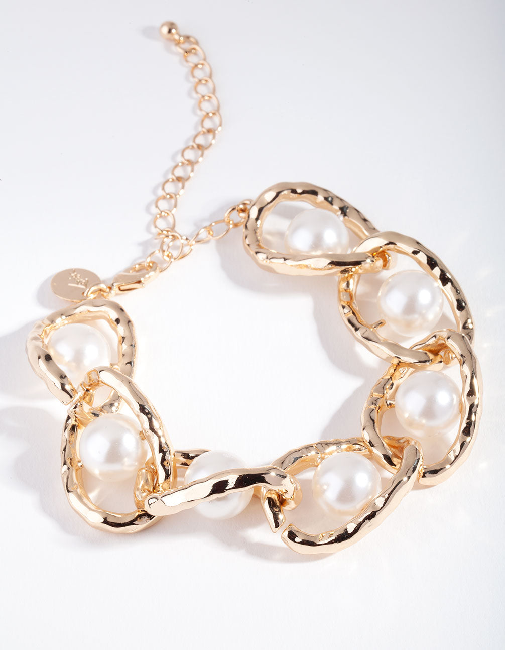 Look to classic gold for next level wrist stacking that makes an impact. This gold-toned bracelet features a stunning link and pearl design.