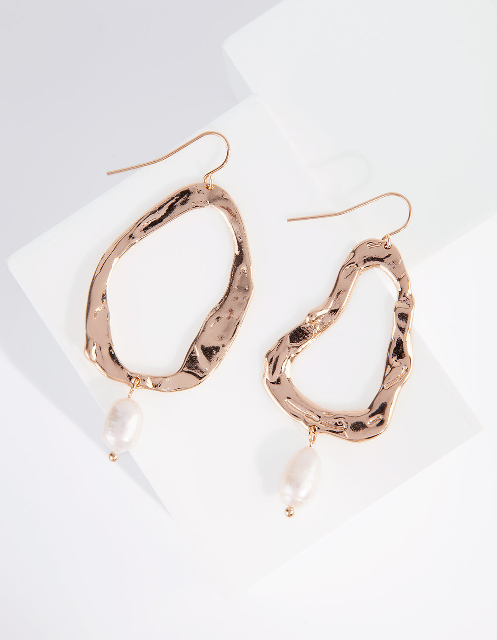 Gold Molten Cutout Freshwater Pearl Earrings