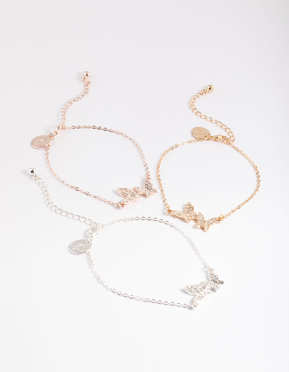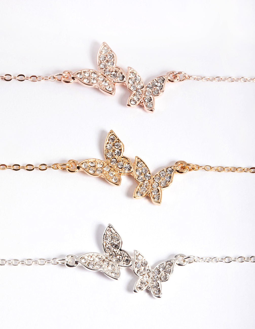 Mixed Metal Pave Butterfly Bracelet Pack