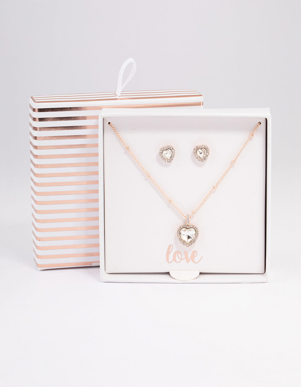 • Rose Gold Heart Halo Necklace & Stud Earrings Set - link has visual effect only