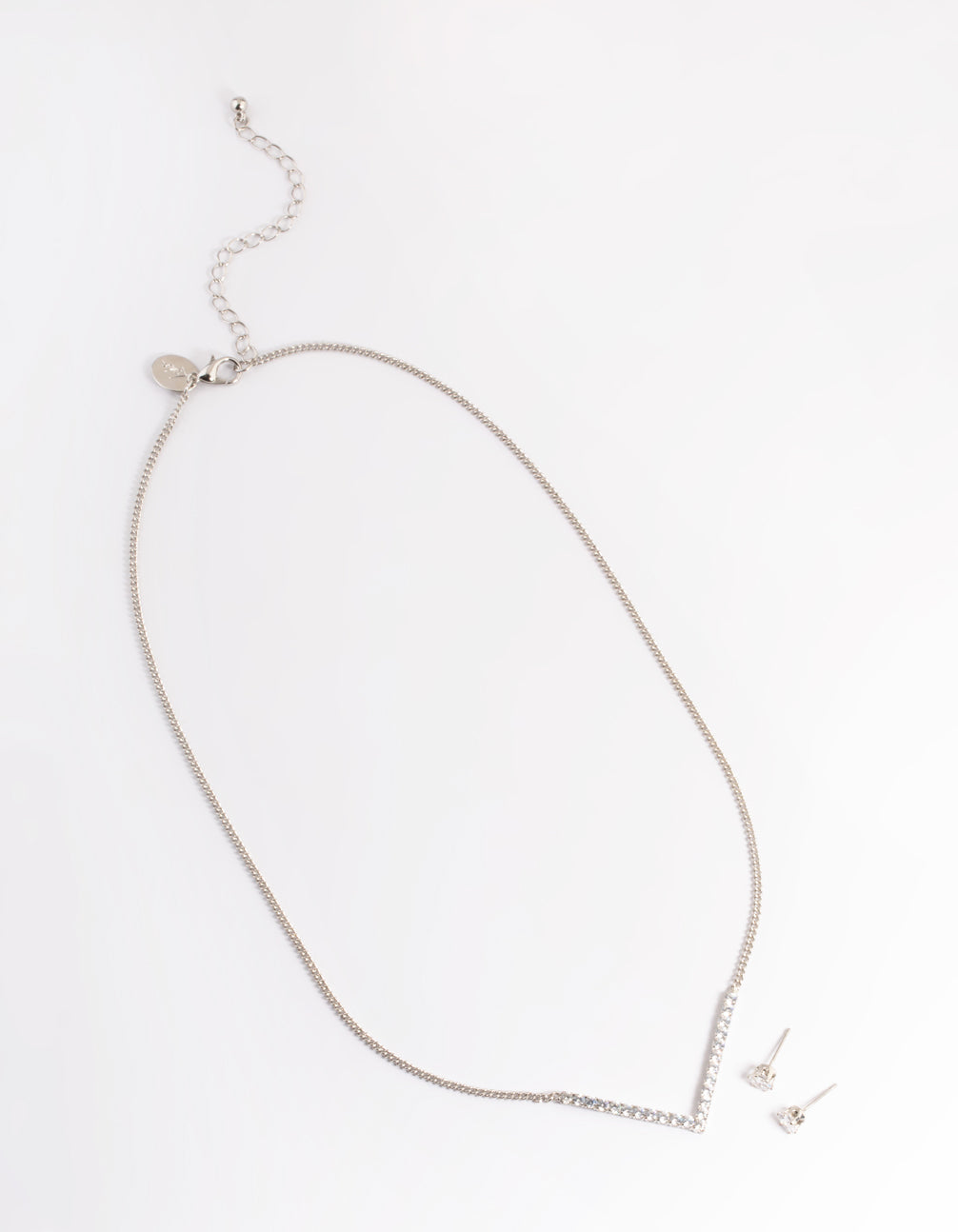 Silver Cubic Zirconia Necklace & Stud Earrings