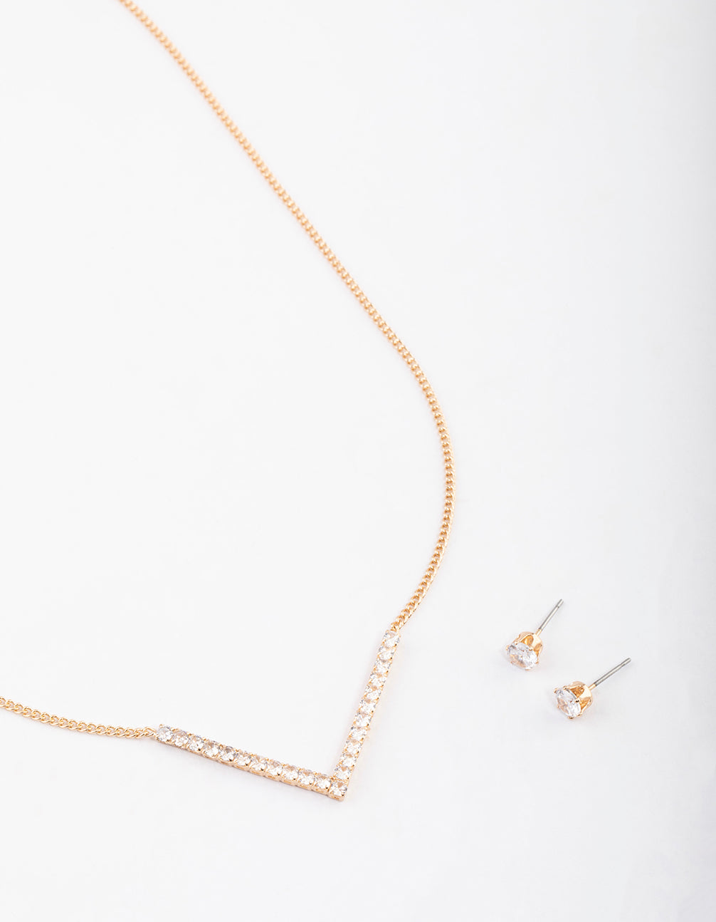 Gold Cubic Zirconia V Necklace & Stud Earrings Set Gold Cubic Zirconia V Necklace & Stud Earrings Set Gold Cubic Zirconia V Necklace & Stud Earrings Set Gold Cubic Zirconia V Necklace & Stud Earrings Set