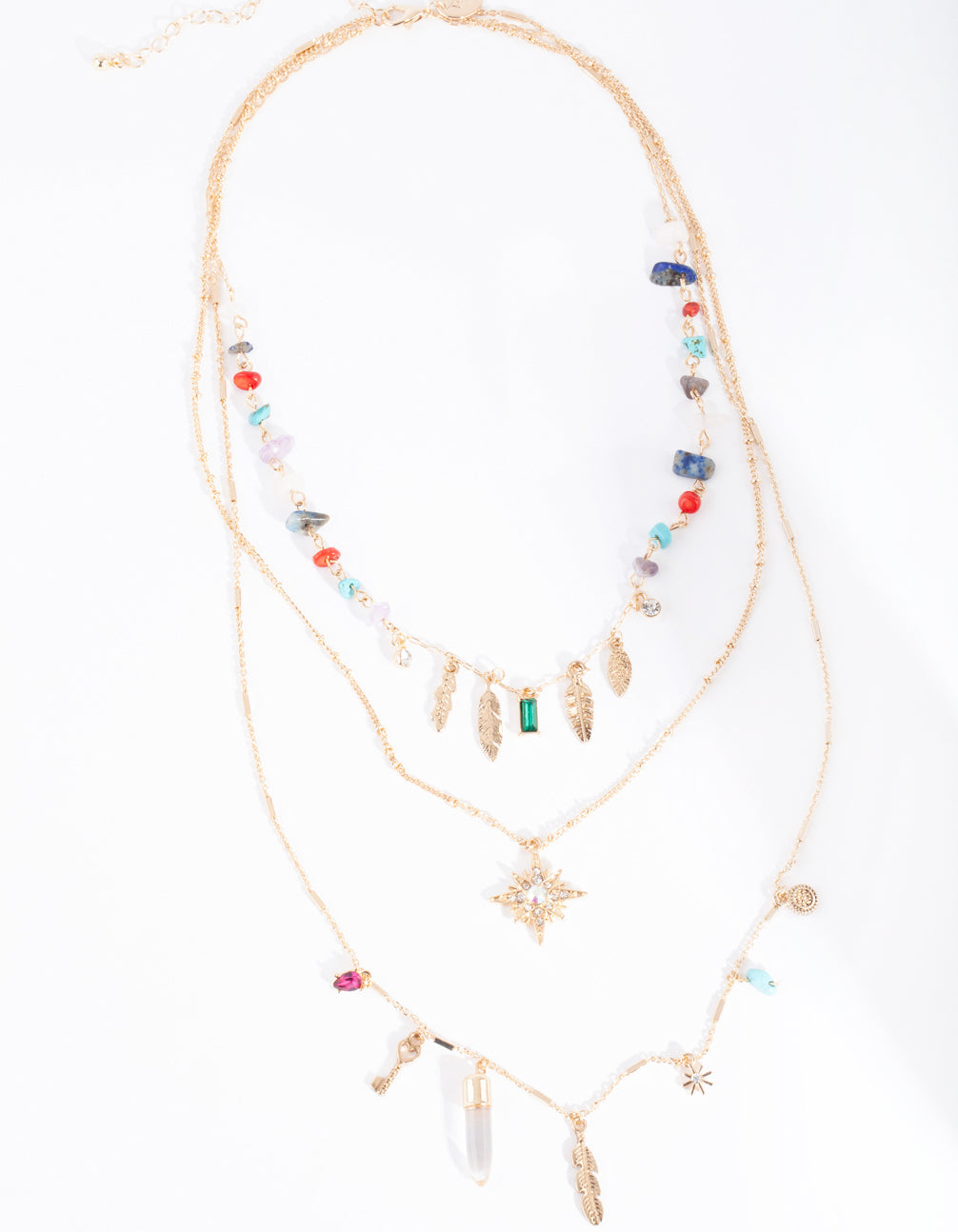 • Gold Multi Layered Stone Charm Necklace - link has visual effect only