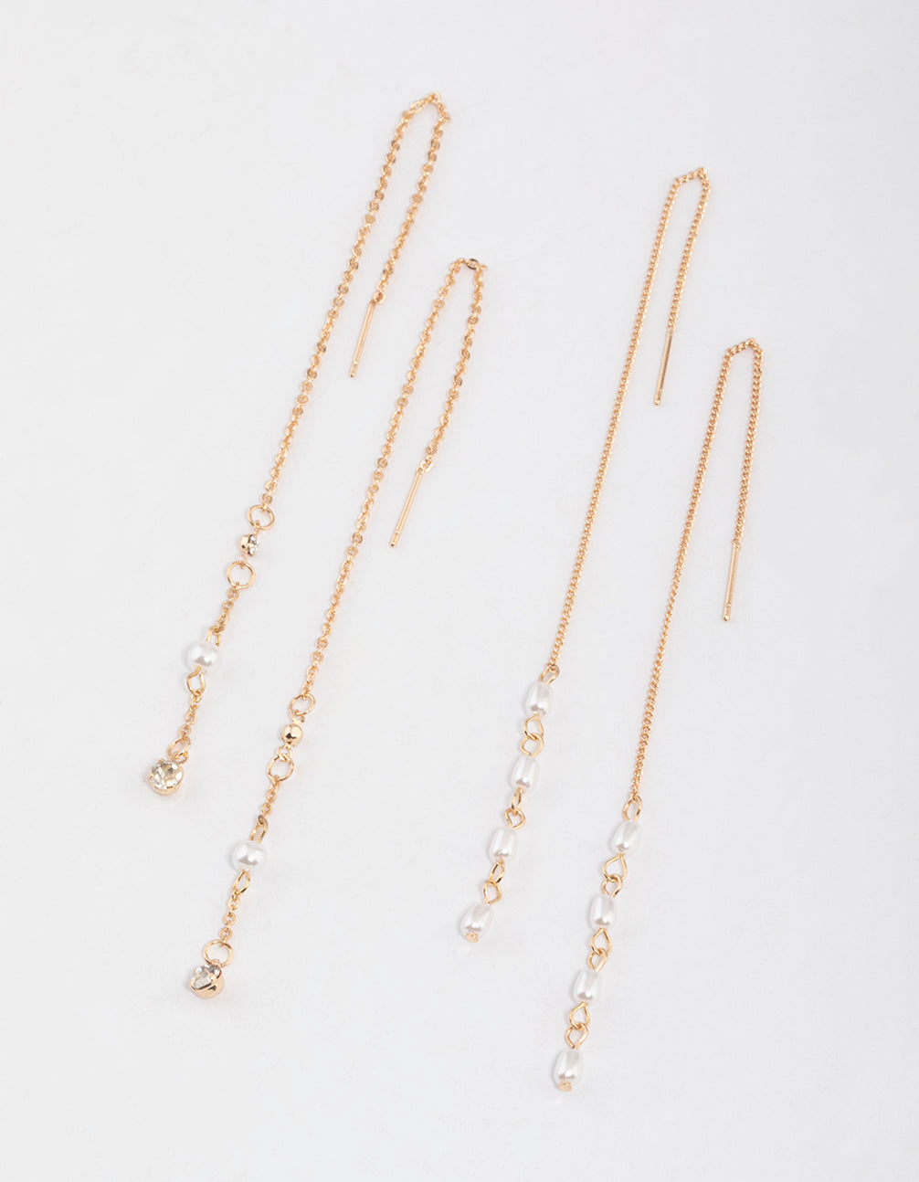 Gold Pearly Diamante Threader Earrings Pack