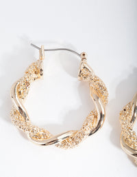 Gold Textured Twist Hoop Earrings