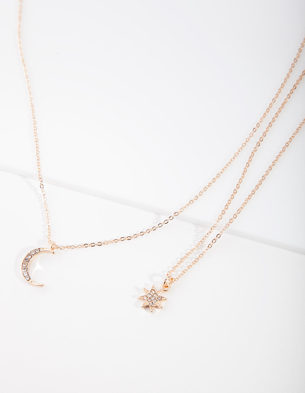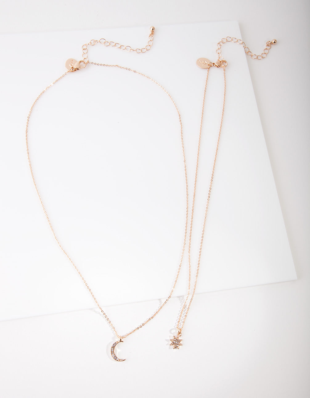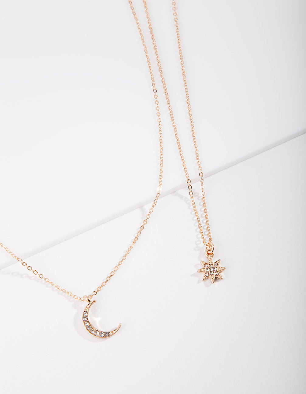 Elevate your outfit with neckwear! This gold-toned necklace duo features a celestial diamante design in a gold tone.