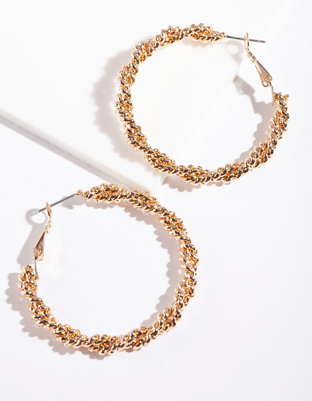 Add some extra style to your look with fashion earrings. This pair features a textured gold-toned coil hoop design.