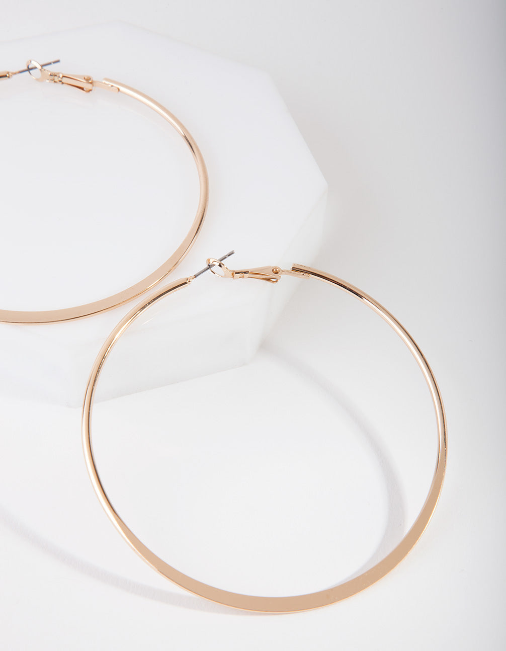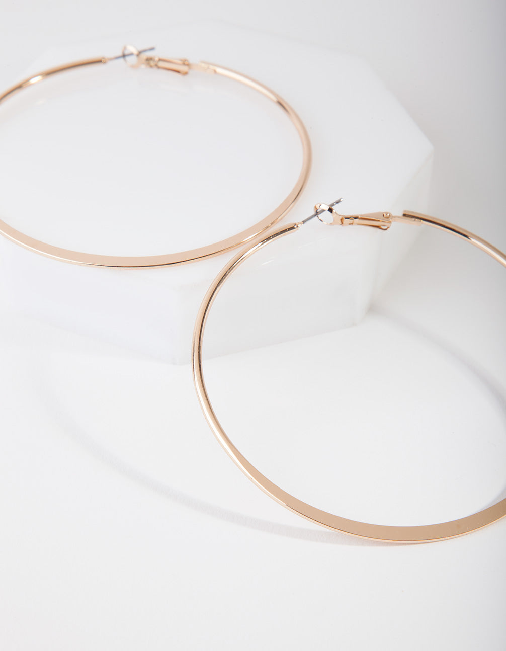 A pair of gold-toned hoop earrings with a flat edge design and 7cm drop.
