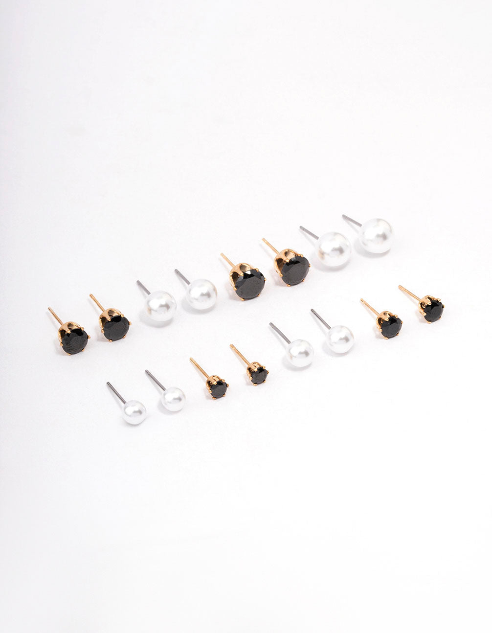 Gold Black Crystal & Pearl Stud Earring 8-Pack