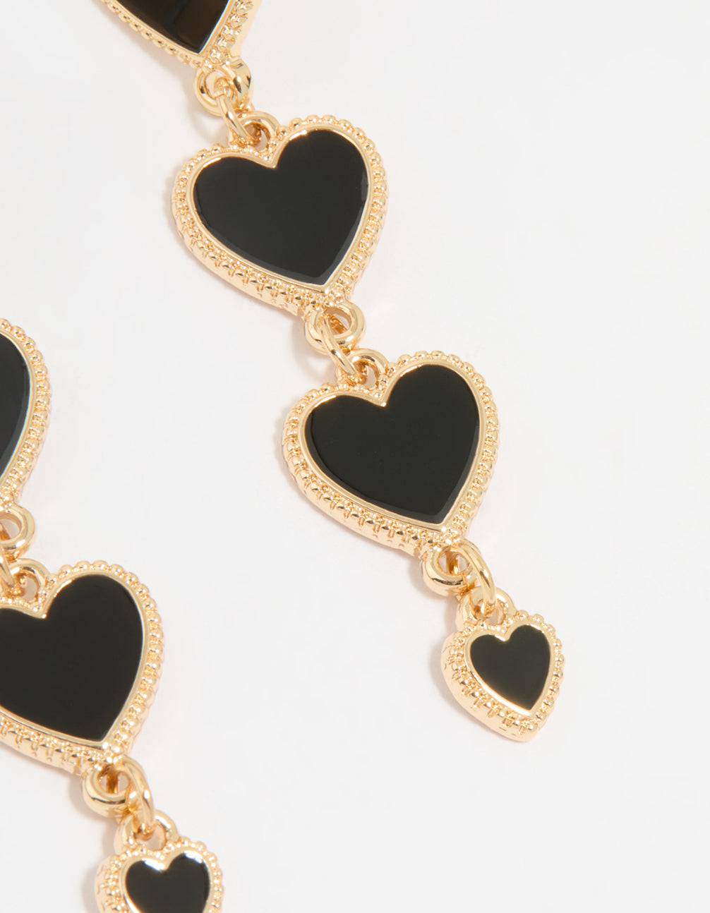 Add a touch of glamour to your look with these Gold Black Heart Tiered Drop Earrings. These striking drop earrings feature layered heart shapes in a bold black finish, elegantly framed by gold tones. Perfect for anyone who loves statement jewellery, they're a versatile pick for dressing up or adding flair to everyday outfits. Whether you're heading to a party, date night, or a chic dinner, these tiered earrings will bring instant sophistication to any ensemble. Pair them with a sleek dress for a bold look or match them with a blouse and tailored trousers for effortless elegance. The heart design adds a playful, romantic vibe, while the gold accents ensure timeless charm.
